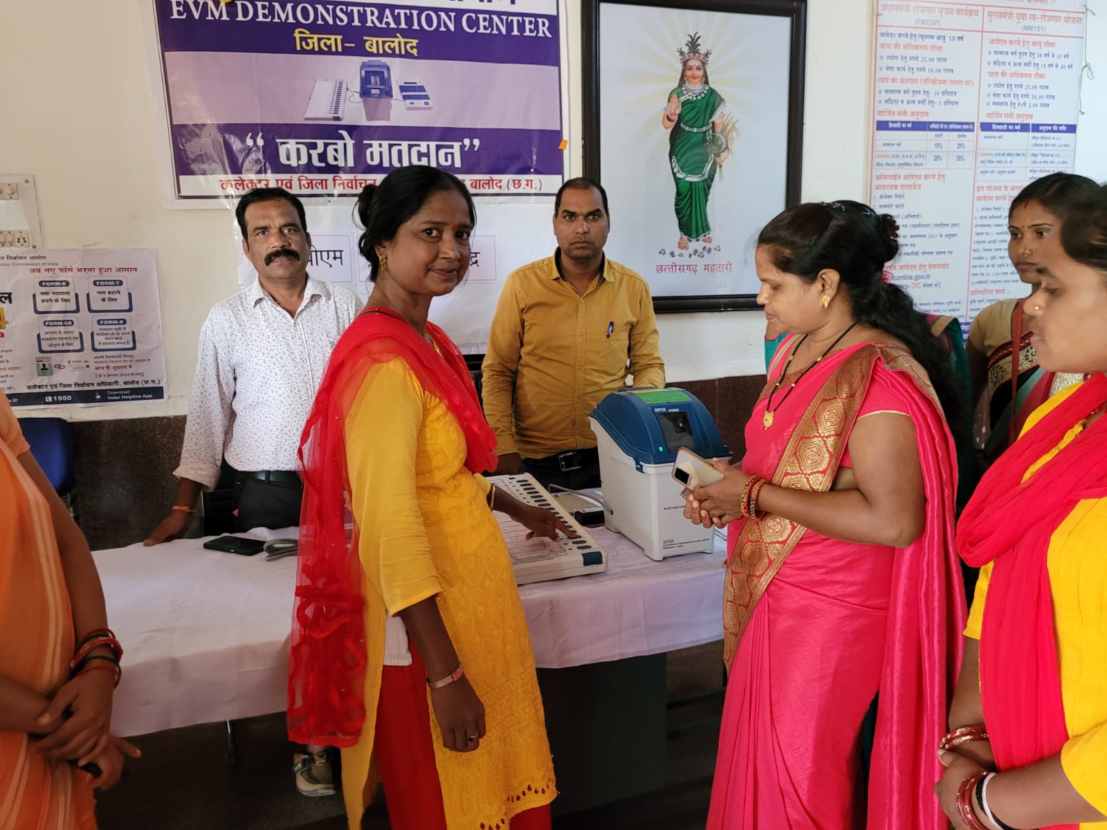 मतदाता जागरूकता अभियान के अंतर्गत बालोद में ई.व्ही.एम. एवं वीवीपैट का प्रदर्शन जारी