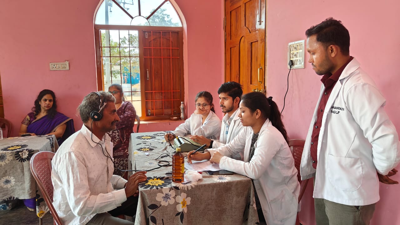 रायपुर .। पं. जवाहरलाल नेहरू स्मृति चिकित्सा महाविद्यालय, रायपुर के नाक, कान, गला (ईएनटी) रोग विभाग के अंतर्गत संचालित बी. एस. एल. पी. पाठ्यक्रम की टीम द्वारा विश्व श्रवण दिवस पर ग्राम पाहंदा, तहसील पाटन जिला दुर्ग में निशुल्क जांच एवं जागरूकता शिविर का आयोजन किया गया। शिविर में विभाग के डॉक्टर, पाठ्यक्रम संयोजक, सह प्राध्यापक, ऑडियोलॉजिस्ट, स्पीच थेरेपिस्ट, स्टाफ नर्स एवं मेडिकल सोशल वर्कर एवं छात्र-छात्राएं शामिल हुए। टीम के द्वारा ग्राम वासियों के कान, नाक एवं गला से संबंधित समस्याओं की जांच, उपचार एवं श्रवण क्षमता की जांच की गई। ग्राम के सरपंच, पंच एवं ग्रामवासियों के सहयोग से शिविर सफलतापूर्वक पूर्ण हुआ। विश्व श्रवण दिवस के अवसर पर चिकित्सालय के ईएनटी विभाग में दो दिनों तक ऑडियोमेट्री, ओ. ए. ई. एवं बेरा की सभी जांचे निशुल्क की गई।