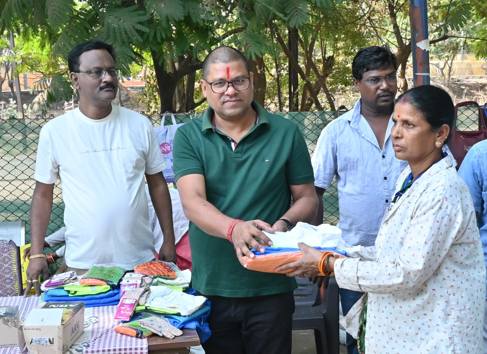 आज नगर निगम भिलाई आयुक्त राजीव कुमार पाण्डेय एस.एल.आर.एम. सेंटर जाकर स्वच्छता दीदीयां स्वस्थ रहे इसलिए उन्हे स्वच्छता किट वितरित किया गया। जिसमें प्रमुख रूप से वर्दी (महिलाओ के लिए साड़ी, ब्लाउज, पेटिकोट सहित), मास्क, केनवास शूज, गमबूट, रबर ग्लबस, टोपी, एपरन, मोजा, काटन ग्लबस, रैनकोट, नेम बैज, पहचान पत्र आदि प्रदान किया गया। स्वास्थ्य अधिकारी जावेद अली ने बताया कि समय-समय पर सफाई कर्मचारियो का स्वास्थ्य परीक्षण भी कराया जाता है। स्वच्छता किट प्रदान करने से उन्हे कार्य करने में बहुत सहुलियत होगा। कुछ कर्मचारी ऐसे है, जिन्हे सब पहन कर कार्य करने में अटपटा लगता है निकाल देते है। हम सब लोग उन्हे पहनने के लिए बीच-बीच में टोकते रहते है। स्वच्छता दीदीयों द्वारा सफाई के क्षेत्र में बहुत ही महत्वपूर्ण कार्य किया जा रहा है।