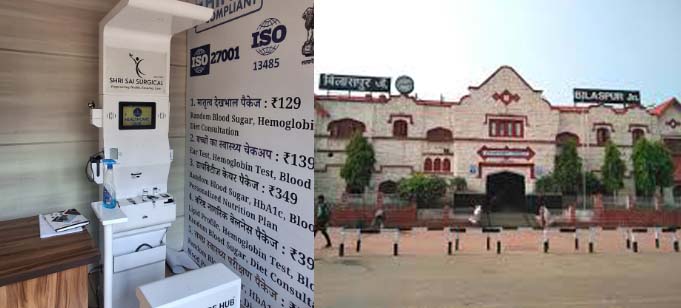 बिलासपुर रेलवे स्टेशन परिसर में हेल्थ कियोस्क से यात्रियों एवं आमजनों को चिकित्सीय जाँच की सुविधा मिल रही है । यह हेल्थ कियोस्क बिलासपुर स्टेशन परिसर में स्थित रेल कोच रेस्टोरेन्ट के सामने प्रधानमंत्री जन औषधि केंद्र के बगल में स्थित है, जो प्रतिदिन सुबह 08 बजे से रात्रि 08 बजे तक लोगों की सुविधा हेतु उपलब्ध है ।