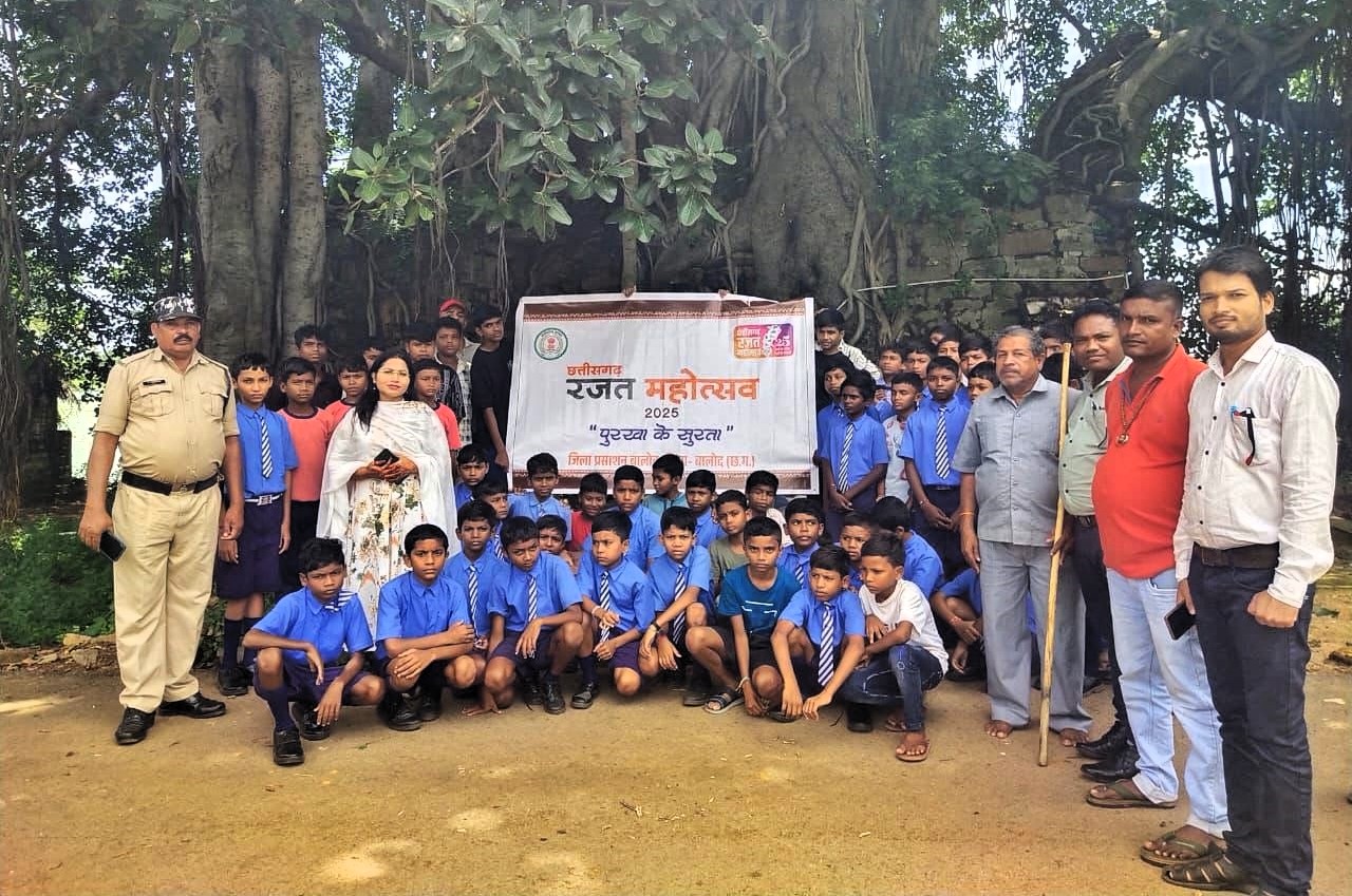 बालोद. छत्तीसगढ़ रजत महोत्सव 2025 के अवसर पर जिला प्रशासन बालोद द्वारा आज जिला मुख्यालय बालोद में ’पुरखा के सुरता’ कार्यक्रम का आयोजन किया गया। जिसके तहत स्कूली विद्यार्थियों को जिला मुख्यालय बालोद स्थित बुढ़ा तालाब के समीप स्थित प्राचीन किला एवं संग्रहालय का भ्रमण कराया गया। स्कूली विद्यार्थियों पुरातत्व के जानकार द्वारा विभिन्न मूर्तियों एवं प्राचीन किलानुमा दरवाजा के बारे में जानकारी दी गई। इस अवसर पर डिप्टी कलेक्टर श्रीमती प्राची ठाकुर सहित बड़ी संख्या में स्कूली विद्यार्थी मौजूद थे।