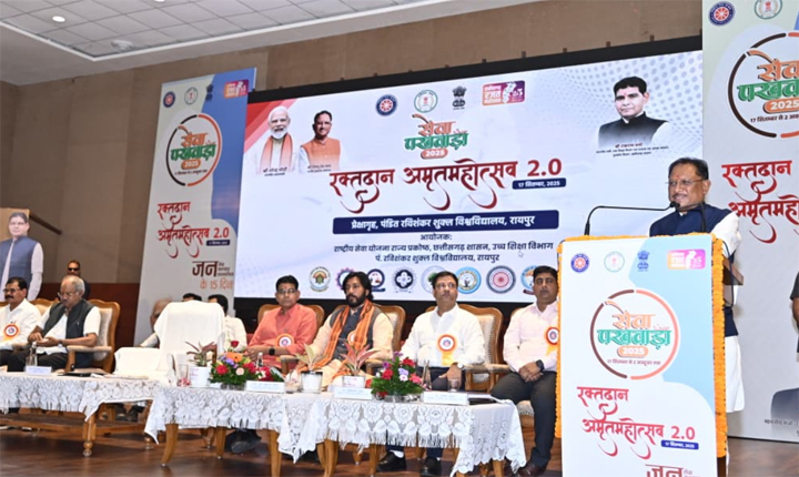 इस अवसर पर राष्ट्रीय सेवा योजना राज्य प्रकोष्ठ, उच्च शिक्षा विभाग एवं पं. रविशंकर शुक्ल विश्वविद्यालय द्वारा सेवा पखवाड़े का शुभारंभ किया गया। 17 सितम्बर से 2 अक्टूबर तक चलने वाले इस अभियान में प्रदेशभर के महाविद्यालयों में रक्तदान सहित विविध गतिविधियाँ आयोजित की जाएंगी।मुख्यमंत्री श्री साय ने रक्तदान कर रहे युवाओं से मुलाकात कर उन्हें शुभकामनाएँ दीं। उन्होंने कहा कि रक्तदान न केवल जीवन रक्षा का माध्यम है, बल्कि रक्तदाता के स्वास्थ्य के लिए भी लाभकारी है। यह सबसे बड़ा दान है, जिसे बार-बार किया जा सकता है।विद्यार्थियों को संबोधित करते हुए मुख्यमंत्री ने कहा कि सरकार शिक्षा के क्षेत्र में लगातार कार्य कर रही है और विद्यार्थियों को उपलब्ध सुविधाओं का पूरा लाभ उठाना चाहिए। उन्होंने कहा कि छत्तीसगढ़ खनिज और वन संपदा सहित अनेक क्षेत्रों में समृद्ध है। ‘छत्तीसगढ़िया सबले बढ़िया’ की पहचान पूरे देश में है। नक्सलवाद जैसी बाधाओं को सुरक्षा बलों के साहस और निरंतर अभियानों से समाप्त किया जा रहा है। जल्द ही बस्तर में विकास की गंगा बहेगी और एक विकसित छत्तीसगढ़ का निर्माण होगा।