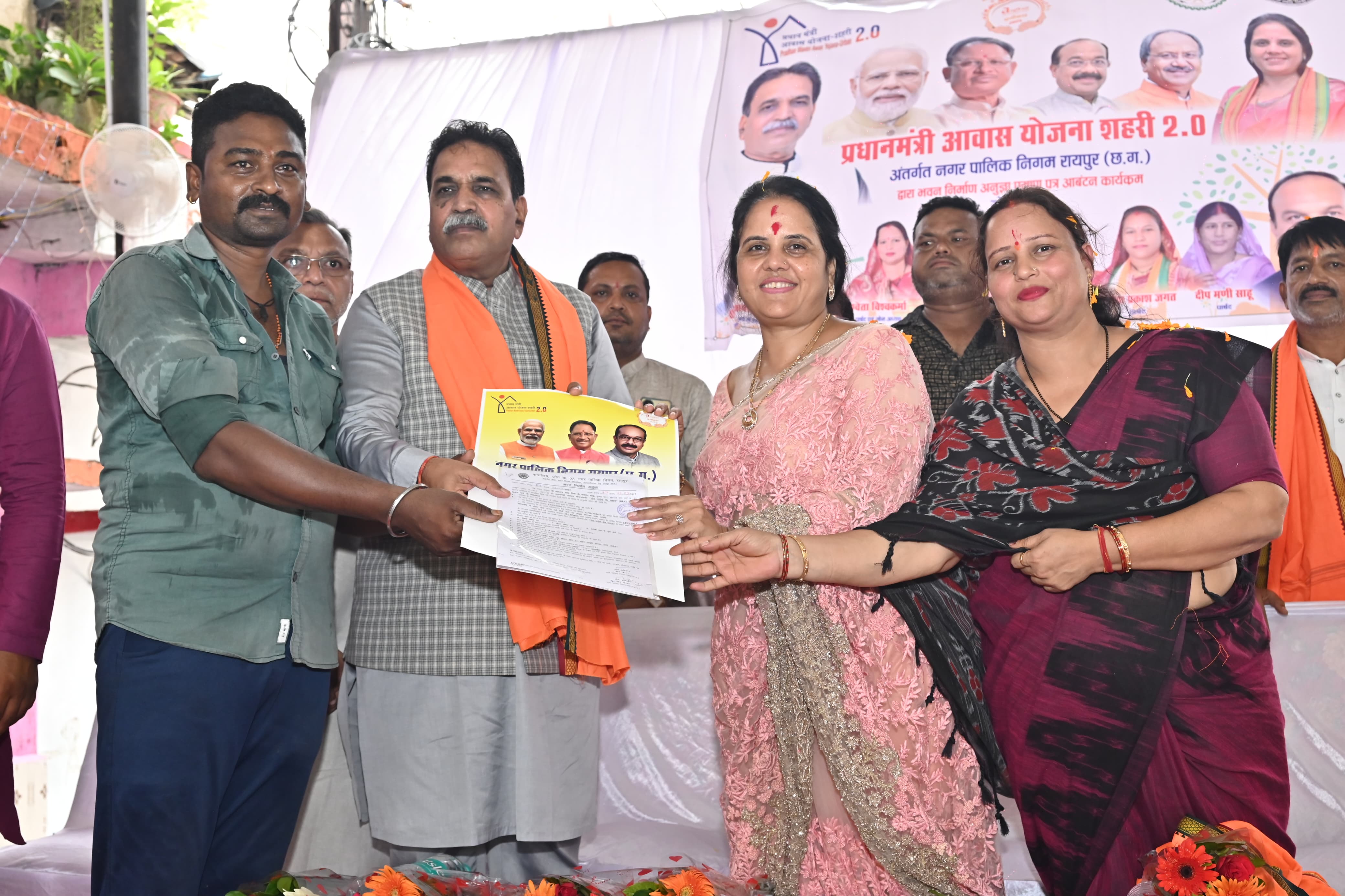 प्रधानमंत्री आवास योजना : पूर्व केबिनेट मंत्री राजेश मूणत और महापौर मीनल चौबे ने प्रदत्त किए भवन निर्माण अनुज्ञा पत्र