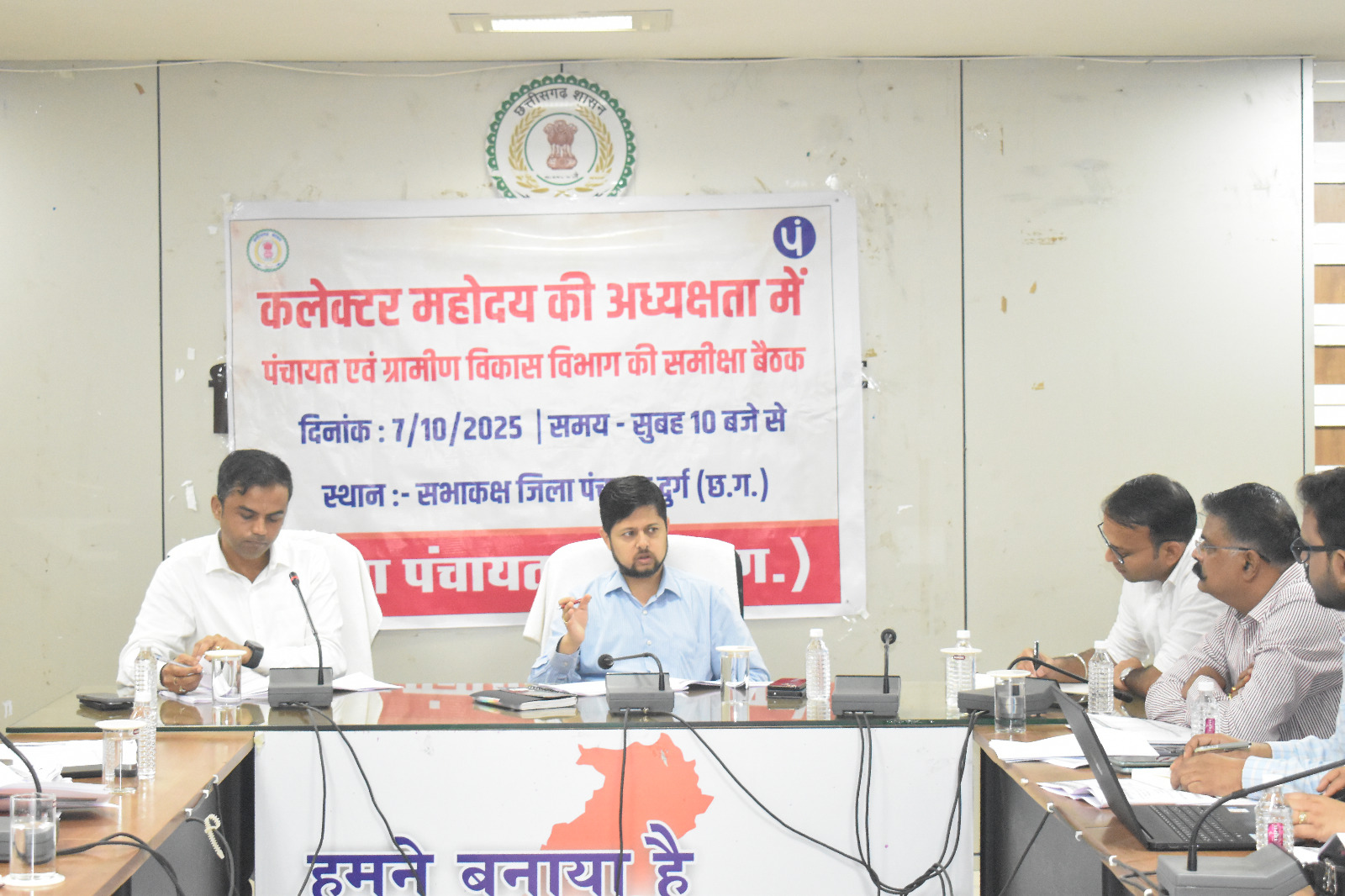 दुर्ग. कलेक्टर श्री अभिजीत सिंह की अध्यक्षता में मंगलवार को जिला पंचायत सभाकक्ष में ग्रामीण विकास विभाग की समीक्षा बैठक आयोजित की गई। इस बैठक में महात्मा गांधी राष्ट्रीय ग्रामीण रोजगार गारंटी योजना (मनरेगा), प्रधानमंत्री आवास योजना, स्वच्छ भारत मिशन, राष्ट्रीय ग्रामीण आजीविका मिशन तथा पंचायतों में संचालित निर्माण कार्यों की विस्तार से समीक्षा की गई।