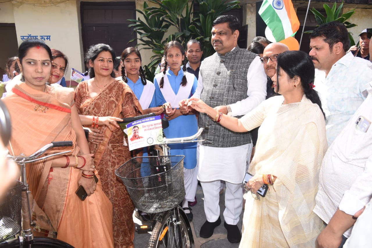 स्कूल शिक्षा मंत्री गजेन्द्र यादव ने छात्राओं को किया सायकल वितरण
