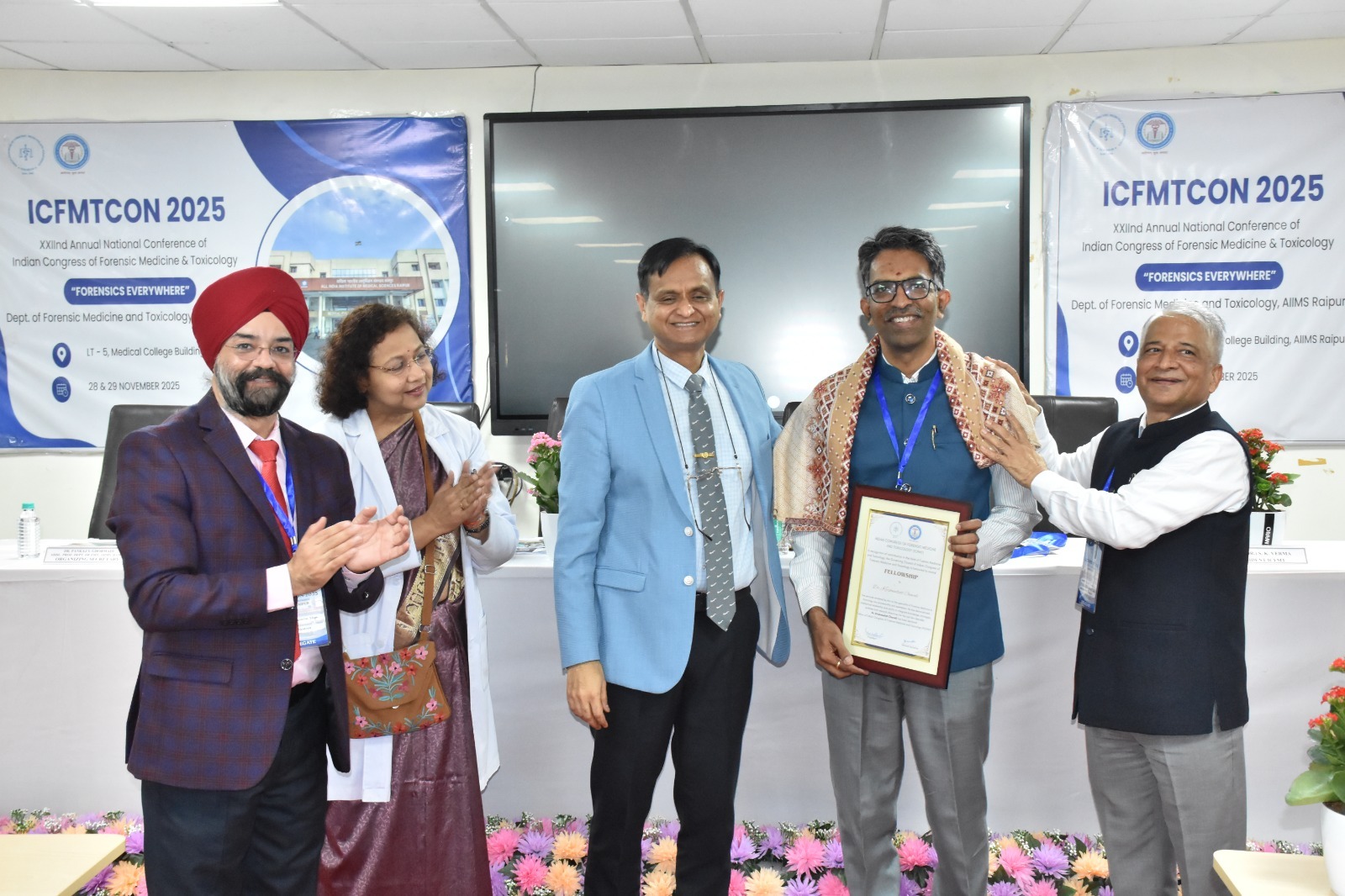 एम्स रायपुर के लिए यह एक गर्व का क्षण था, जब फॉरेंसिक मेडिसिन एवं टॉक्सिकोलॉजी विभाग के प्रोफेसर एवं विभागाध्यक्ष, डॉ. कृष्णदत्त चावले को भारतीय फॉरेंसिक मेडिसिन एवं टॉक्सिकोलॉजी कांग्रेस का फेलोशिप सम्मान प्रदान किया गया। यह सम्मान उनके उत्कृष्ट शैक्षणिक, शोध एवं नेतृत्व योगदान की मान्यता है।