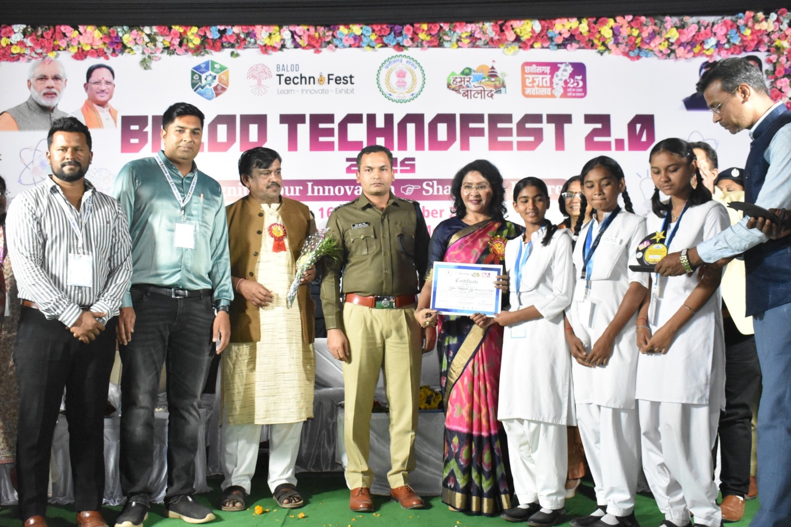 कार्यक्रम को संबोधित करते हुए पुलिस अधीक्षक श्री योगेश कुमार पटेल ने बालोद टेक्नोफेस्ट 2.0 के आयोजन को अविस्मरणीय बताते हुए इसकी सराहना की। उन्होंने कहा कि यह आयोजन हमारे विद्यार्थियों में वैज्ञानिक चेतना के विकास की दिशा में अत्यंत महत्वपूर्ण कदम साबित होगा। इस अवसर पर उन्होंने मानव सभ्यता के विकास एवं मानव जीवन को सरल, सुगम बनाने तथा सुरक्षित रखने में विज्ञान की महत्ता एवं योगदानों का भी उल्लेख किया। उन्होंने कहा कि मानव जीवन को सुखमय बनाने तथा समय एवं श्रम की बचत करने में विज्ञान का योगदान अत्यंत महत्वपूर्ण है। अपर कलेक्टर श्री चंद्रकांत कौशिक ने बालोद टेक्नोफेस्ट के आयोजन की सराहना करते हुए कहा कि विज्ञान, मानव सभ्यता के शुरूआती दौर में पहिए की खोज से लेकर आज अत्याधुनिक दौर में विज्ञान के चर्मोत्कर्ष पर पहुँच गया है। उन्होंने कहा कि भारतीय संविधान में वैज्ञानिक दृष्टिकोण को बढ़ावा देने की बात कही गई है। इस आयोजन के माध्यम से इस दिशा में महत्वपूर्ण कार्य करने का प्रयास किया गया है। कार्यक्रम को संबोधित करते हुए जिला पंचायत के मुख्य कार्यपालन अधिकारी श्री सुनील चंद्रवंशी ने इस दो दिवसीय आयोजन को विद्यार्थियों में वैज्ञानिक चेतना एवं दृष्टिकोण को बढ़ावा देने की दिशा में महत्वपूर्ण कदम बताया। शिक्षा विभाग के संयुक्त संचालक श्री आरएल ठाकुर ने इस बेहतरीन आयोजन के लिए जिला प्रशासन एवं शिक्षा विभाग के संयुक्त प्रयासों की भूरी-भूरी सराहना की। कार्यक्रम में स्वागत भाषण प्रस्तुत करते हुए जिला शिक्षा अधिकारी श्रीमती मधुलिका तिवारी ने बालोद टेक्नोफेस्ट 2.0 के आयोजन के उद्देश्यों के संबंध में विस्तारपूर्वक जानकारी दी। इस अवसर पर अतिथियों के द्वारा कक्षा 6वीं से 8वीं के अंतर्गत प्रथम स्थान पर रहे शासकीय कन्या माध्यमिक शाला गुरूर, द्वितीय स्थान पर रहे स्वामी आत्मानंद उत्कृष्ट विद्यालय सुरेगांव, तृतीय स्थान पर रहे पीएमश्री स्वामी आत्मानंद उत्कृष्ट विद्यालय कन्नेवाड़ा के विद्यार्थियों को सम्मानित किया गया। इसी तरह कक्षा 9वीं से 10वीं के अंतर्गत प्रथम स्थान पर रहे शासकीय आदर्श कन्या हायर सेकण्डरी स्कूल बालोद, द्वितीय स्थान पर रहे स्वामी आत्मानंद उत्कृष्ट विद्यालय मोहंदीपाट तथा तृतीय स्थान पर रहे नेताजी सुभाष चंद्र बोस हायर सेकण्डरी स्कूल अर्जुंदा को सम्मानित किया गया। इसके साथ ही 11वीं एवं 12वीं कक्षा के अंतर्गत प्रथम स्थान पर रहे स्वामी आत्मानंद हिन्दी माध्यम स्कूल बालोद, द्वितीय स्थान पर रहे शासकीय हायर सेकण्डरी स्कूल कोटगांव एवं तृतीय स्थान पर रहे शासकीय हायर सेकण्डरी स्कूल धनेली के विद्यार्थियों को सम्मानित किया। इस अवसर पर बालोद टेक्नोफेस्ट के आय