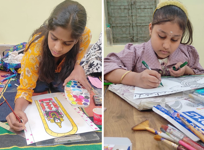 भिलाई नगर। सेक्टर 05 स्थित बालाजी मंदिर में आंध्र साहित्य समिति के तत्वावधान में हर साल की तरह इस मकर संक्रांति पर भी विविध आयोजन होंगे। चार दिनों तक मनाए जाने वाले तेलुगु भाषियों के सबसे बड़े उत्सव में विभिन्न धार्मिक अनुष्ठान, सांस्कृतिक कार्यक्रम और कई प्रतियोगिताएं रखी गई हैं। इस कड़ी में रविवार को ड्राइंग कंपिटिशन हुआ, जिसमें तीन आयु वर्गों के बालक-बालिकाओं ने कूंचे से अपनी कल्पनाओं में रंग भरे। सब जूनियर, जूनियर और सीनियर ग्रुप में हुई इस प्रतियोगिता में प्रतिभागियों ने पोंगल, प्रकृति, भगवान बालाजी, बजरंग बली, पर्यावरण संरक्षण और प्रदूषण के दुष्प्रभाव पर आकर्षक चित्रकारी की।