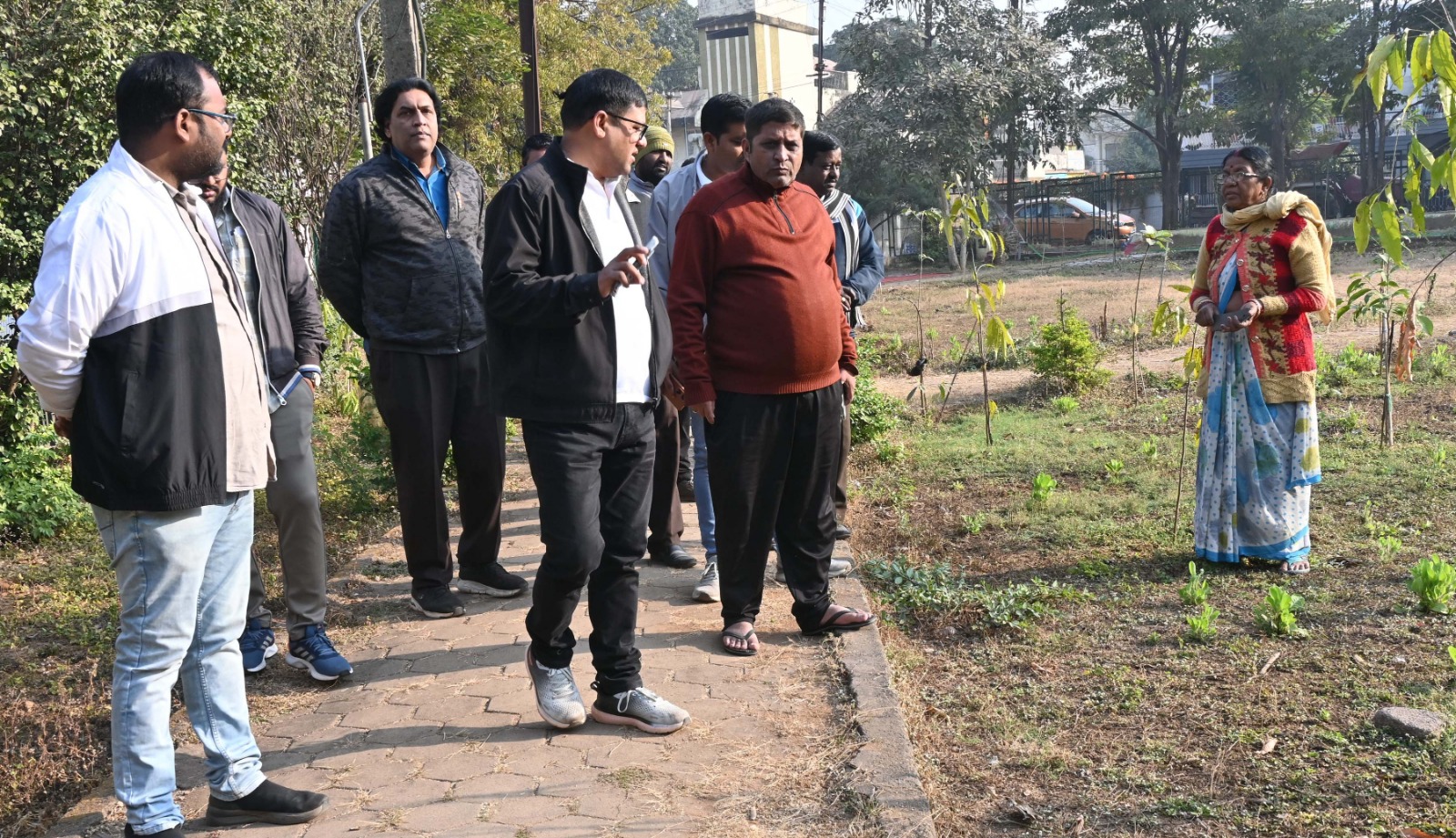 निगम आयुक्त द्वारा वैशाली नगर अंतर्गत वार्ड क्रं. 14 शांति नगर क्षेत्र में स्थित त्रिकोणा उद्यान का निरीक्षण किया गया है। उद्यान में साफ-सफाई, सिंचाई एवं प्रकाश व्यवस्था को और बेहतर कराने कार्यपालन अभियंता अरविंद शर्मा एवं उद्यान अधिकारी तिलेश्वर साहू को निर्देशित किया गया है। मोहल्ले के उपस्थित नागरिको से उद्यान रखरखाव एवं अन्य व्यवस्थाओं के संबंध में चर्चा किये। दिगम्बर जैन मंदिर के समीपस्थ नागरिको एवं मोहल्ले वासियो को सुगम यातायात की सुविधा मिले इस हेतु नया डामरीकरण सड़क निर्माण किया गया है, जिसका अवलोकन आयुक्त द्वारा किया गया है। शिव मंदिर कालोनी में स्थानीय नागरिको द्वारा सड़क बनाने मांग किया गया है। उक्त स्थल पर सड़क निर्माण होना प्रस्तावित है। जिसका अवलोकन कर आयुक्त ने कार्यवाही पूर्ण कर कार्य कराने निर्देशित किये है। शांति नगर में गली, मोहल्लो का साफ-सफाई व्यवस्था का निरीक्षण कर आवश्यक दिशा-निर्देश किये है। रिक्त भूमि में लोगो द्वारा अपने घरो का कचरा फेका जाता था, जिसका कायाकल्प करते हुए गार्बेज वेरियेबल प्वाइंट के रूप में पेविंग कर ब्यूटिफिकेशन का कार्य किया गया है। जिससे जगह की खुबसुरती बड़ गई है। उक्त स्थल का शेष बचे हुए भूमि में वेडिंग जोन हेतु उपयोग करने कहा गया है।