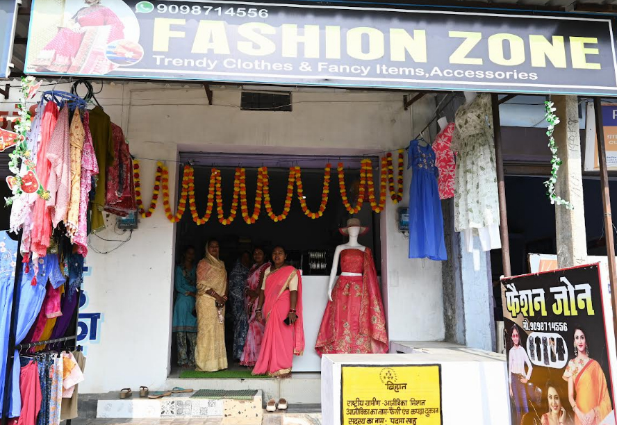 भीमखोज के मुख्य सड़क में एक साज-सज्जा सहित फैशन जोन का शो रूम दिखाई देता है। जिनका संचालन महिला सदस्य पद्मा साहू कर रही है। दुकान में आधुनिक रेडीमेड परिधान के साथ-साथ साड़ी, फैंसी आइटम एवं कॉस्मेटिक सामग्री भी उपलब्ध है। सुसज्जित और व्यवस्थित दुकान किसी शो-रूम से कम नहीं दिखती, जिससे ग्राहकों का भरोसा लगातार बढ़ रहा है। इस सफलता के पीछे बिहान योजना और आजीविका मिशन के अंतर्गत जिला प्रशासन की अहम भूमिका रही है। पद्मा साहू को बिहान से समूह के रूप में 1 लाख रुपये तथा बाद में 60 हजार रुपये की आर्थिक सहायता प्राप्त हुई। व्यवसाय की शुरुआत उन्होंने 1.50 लाख रुपए के ऋण से की। समय पर ऋण चुकाने के बाद उन्होंने व्यवसाय विस्तार के लिए 3 लाख रुपये का ऋण लिया, जिससे कारोबार और मजबूत हुआ। वर्तमान में उनकी दुकान से प्रतिदिन लगभग 5 हजार रुपए तक की बिक्री हो रही है। इस पूरे सफर में परिवार का निरंतर सहयोग उनकी सबसे बड़ी ताकत बना। हाल ही में यह दुकान आजीविका दुकान के अंतर्गत संचालित की जा रही है।