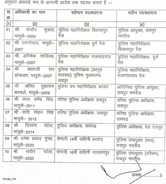 आईपीएस संजीव शुक्ला बने रायपुर के पहले पुलिस कमिश्नर , 15 आईपीएस का तबादला