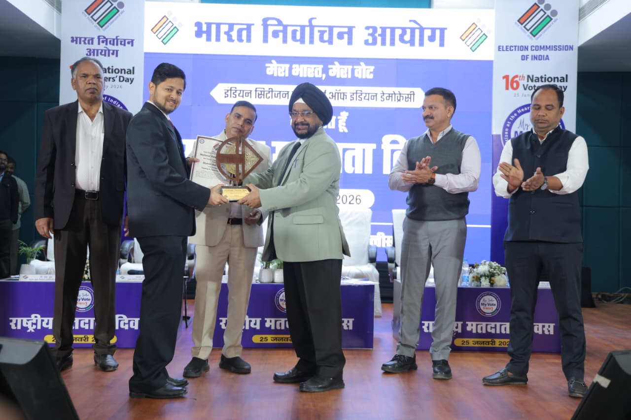 दुर्ग, / राष्ट्रीय मतदाता दिवस 2026 के अवसर पर रविवार को रायपुर में राज्य स्तरीय समारोह का आयोजन किया गया। जिसमें भारत निर्वाचन आयोग के निर्देशानुसार मतदाता जागरूकता एवं निर्वाचन कार्यों में उत्कृष्ट प्रदर्शन करने वाले जिलों को सम्मानित किया गया। इस क्रम में राज्य के दुर्ग जिले का चयन प्रशिक्षण एवं क्षमता निर्माण श्रेणी के अंतर्गत राज्य स्तरीय पुरस्कार के लिए किया गया है। प्राप्त जानकारी के अनुसार यह सम्मान दुर्ग जिले को निर्वाचन संबंधी कार्यों में उल्लेखनीय योगदान के लिए प्रदान किया गया है। राज्य स्तरीय समारोह का आयोजन इंदिरा गांधी कृषि महाविद्यालय परिसर, रायपुर स्थित विवेकानंद सभागार में किया गया, जिसमें दुर्ग जिले की ओर से कलेक्टर एवं जिला निर्वाचन अधिकारी श्री अभिजीत सिंह ने सम्मान ग्रहण किया। राष्ट्रीय मतदाता दिवस का उद्देश्य मतदाताओं में जागरूकता बढ़ाना तथा लोकतांत्रिक प्रक्रिया में उनकी सक्रिय भागीदारी सुनिश्चित करना है।
