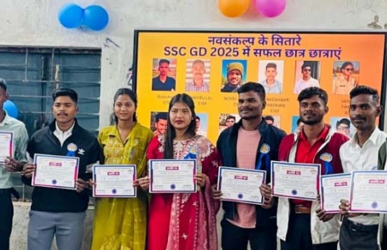 रायपुर। छत्तीसगढ़ शासन की पहल एवं जिला प्रशासन के मार्गदर्शन में संचालित नव संकल्प शिक्षण संस्थान, जशपुर ने युवाओं को रोजगारोन्मुखी बनाने की दिशा में एक और उल्लेखनीय उपलब्धि अर्जित की है। इस संस्थान के 12 छात्र-छात्राओं का चयन वर्ष 2025 में कर्मचारी चयन आयोग द्वारा आयोजित कांस्टेबल जनरल ड्यूटी (एसएससी जीडी) परीक्षा के माध्यम से विभिन्न अर्धसैनिक बलों में हुआ है।