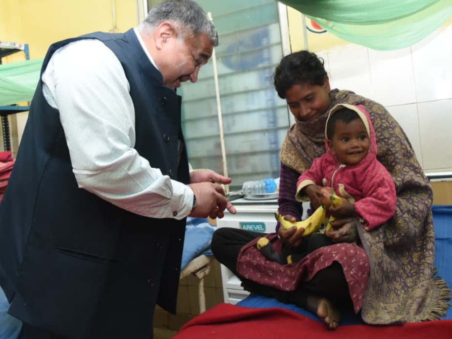 मंत्री श्री अग्रवाल ने पूजा-अर्चना के उपरांत लखनपुर स्थित स्वास्थ्य केंद्र पहुंचकर भर्ती मरीजों से मुलाकात की। उन्होंने मरीजों का कुशलक्षेम जाना, उनका हालचाल पूछा तथा उन्हें फल वितरित कर शीघ्र स्वास्थ्य लाभ की कामना की। इस दौरान स्वास्थ्य केंद्र के चिकित्सकों एवं स्टाफ से भी चर्चा कर व्यवस्थाओं की जानकारी ली और बेहतर स्वास्थ्य सेवाएं उपलब्ध कराने के निर्देश दिए।