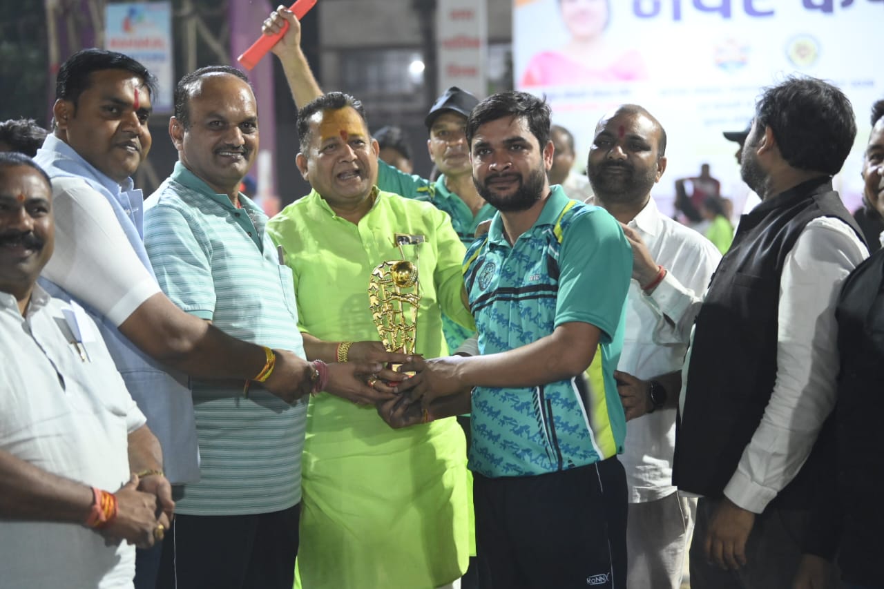 *दूसरे दिन पहले मैच में बेस्ट बालर नरेन्द्र नायक, बेस्ट बेटसमैन नवीन वर्मा, मैन ऑफ द मैच नरेन्द्र गेंन्द्रे बने, नगर निगम सभापति श्री सूर्यकान्त राठौड़ ने ट्राफी देकर किया सम्मानित*