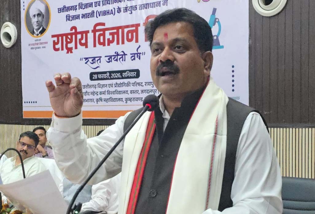 रायपुर ।राष्ट्रीय विज्ञान दिवस के अवसर पर जगदलपुर में आयोजित कार्यक्रम में उप मुख्यमंत्री श्री विजय शर्मा मुख्य अतिथि के रूप में शामिल हुए। यह समारोह शहीद महेंद्र कर्मा विश्वविद्यालय, छत्तीसगढ़ विज्ञान एवं प्रौद्योगिकी परिषद तथा विज्ञान भारती के संयुक्त तत्वाधान में कृषि महाविद्यालय के सभागार में आयोजित किया गया। कार्यक्रम में विज्ञान के क्षेत्र में नवाचार, शोध एवं वैज्ञानिक सोच को बढ़ावा देने पर विशेष जोर दिया गया। उप मुख्यमंत्री श्री विजय शर्मा ने अपने संबोधन में कहा कि राष्ट्रीय विज्ञान दिवस वैज्ञानिकों के योगदान को याद करने और युवाओं में वैज्ञानिक दृष्टिकोण विकसित करने का अवसर है। नवजवान साथी ही अब सारथी हैं विज्ञान के सारे अभियान में शामिल हो। उन्होंने विद्यार्थियों से विज्ञान को केवल पाठ्यक्रम तक सीमित न रखते हुए नवाचार और शोध की दिशा में आगे बढ़ने का आह्वान किया। उन्होंने विश्व और भारत के प्रारंभिक वैज्ञानिकों की तत्कालीन परिस्थितियों का उल्लेख करते हुए कहा कि वर्तमान में माता- बहनों को विज्ञान के क्षेत्र में आगे बढ़ने के लिए प्रोत्साहित किया जा रहा है।