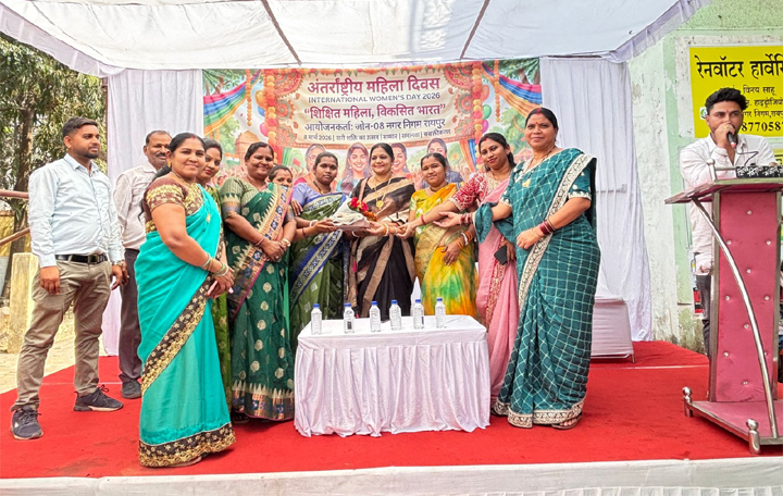 रायपुर/ अंतर्राष्ट्रीय महिला दिवस के अवसर पर रायपुर नगर पालिक निगम स्वास्थ्य विभाग अध्यक्ष श्रीमती गायत्री सुनील चंद्राकर ने नगर निगम जोन 8 के महोबा बाजार स्थित जोन कार्यालय परिसर में नगर निगम जोन 8 जोन कमिश्नर श्रीमती राजेश्वरी पटेल सहित मिलकर नगर निगम जोन 8 क्षेत्र के अंतर्गत 15 स्वच्छता दीदियों और जोन 8 स्वास्थ्य विभाग अंतर्गत सेवारत 50 महिला सफाई कर्मचारियों की सेवाओं को सराहते हुए उन्हें मंच पर बुलाकर नगर निगम जोन 8 स्वास्थ्य विभाग की ओर से सम्मानित किया और महिला सफाई कर्मचारियों और स्वच्छता दीदियों को अंतर्राष्ट्रीय महिला दिवस की हार्दिक शुभकामनायें दीं. इस दौरान मंच पर नगर निगम जोन 8 जोन स्वास्थ्य अधिकारी श्री गोपीचंद देवांगन और स्वच्छता निरीक्षक श्री रितेश झा एवं श्री बंजारे की उपस्थिति रही.