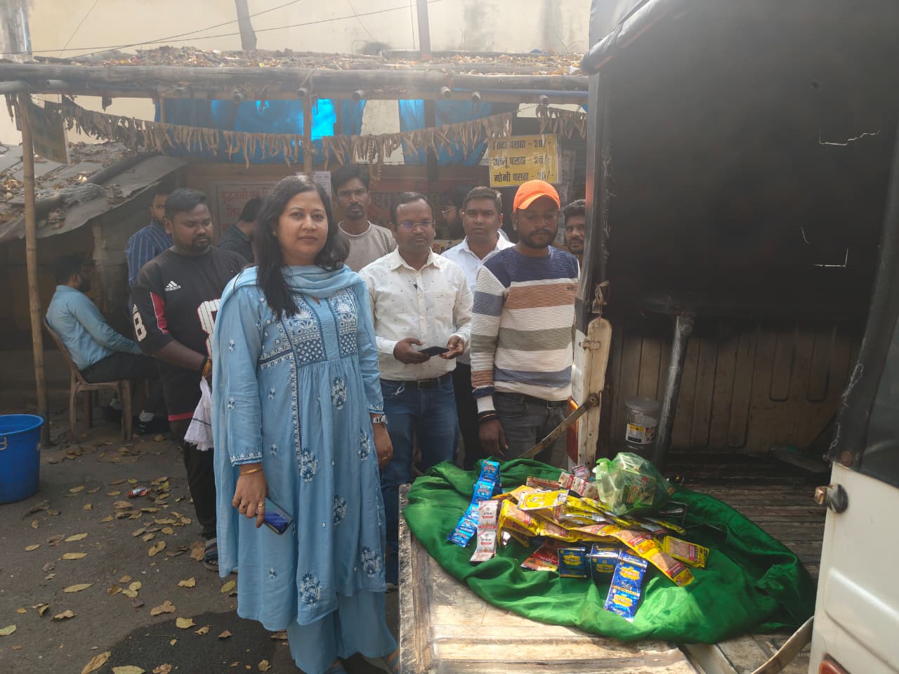 रायपुर - आज रायपुर पुलिस कमिश्नर डॉ. संजीव शुक्ला और रायपुर जिला कलेक्टर डॉ गौरव कुमार सिंह के आदेशानुसार और रायपुर नगर पालिक निगम आयुक्त श्री विश्वदीप के निर्देशानुसार रायपुर नगर निगम मुख्यालय नगर निवेश विभाग उड़न दस्ता द्वारा रायपुर नगर निगम जोन क्रमांक 4 के क्षेत्र के अंतर्गत छत्तीसगढ़ कॉलेज, संत कँवरराम स्कूल, हिन्दू हाई स्कूल आदि भिन्न शिक्षण संस्थाओं के आसपास संचालित पान दुकानों का औचक निरीक्षण कर सम्बंधित पान दुकान संचालकों के पास से दुकान में विक्रय हेतु रखे गए गुटखा, तम्बाकू, सिगरेट, पान मसाला आदि नशे से सम्बंधित वस्तुओं के अनेक पाउच पैकेटस को स्थल पर तत्काल जप्त करने की कार्यवाही शासन के कोटपा एक्ट के प्रावधान अनुसार नगर निगम जोन 4 नगर निवेश विभाग की टीम और निगम मुख्यालय नगर निवेश विभाग उड़न दस्ता की टीम द्वारा मिलकर की गयी और कोटपा एक्ट प्रावधान के अनुसार सम्बंधित पान दुकान संचालकों को भविष्य के लिए नियमानुसार कड़ी कार्यवाही की चेतावनी नगर निगम जोन 4 जोन कमिश्नर डॉ दिव्या चंद्रवंशी के मार्गनिर्देशन और कार्यपालन अभियंता श्री शेखर सिंह और सहायक अभियंता श्री दीपक देवांगन, श्री गुलाबचंद कर्ष एवं अन्य सम्बंधित अधिकारियों और कर्मचारियों की उपस्थिति में दी गयी.
