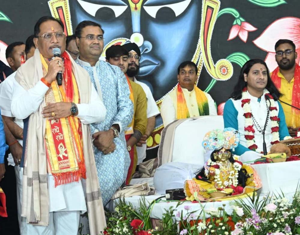 रायपुर। मुख्यमंत्री श्री विष्णुदेव साय राजधानी रायपुर के वीआईपी रोड स्थित श्रीराम मंदिर परिसर में आयोजित श्रीमद्भागवत कथा में शामिल हुए। उन्होंने व्यास पीठ पर विराजमान श्री हिमांशु कृष्ण भारद्वाज जी द्वारा कही जा रही श्रीमद्भागवत कथा का श्रद्धापूर्वक श्रवण किया। इस अवसर पर मुख्यमंत्री श्री साय ने कहा कि श्रीमद्भागवत का मूल संदेश यही है कि कर्म ही सच्ची पूजा है। उन्होंने कहा कि हमें सच्चाई और निष्ठा के साथ अपने कर्तव्य पथ पर अग्रसर रहकर मानव जीवन को सार्थक बनाना चाहिए।