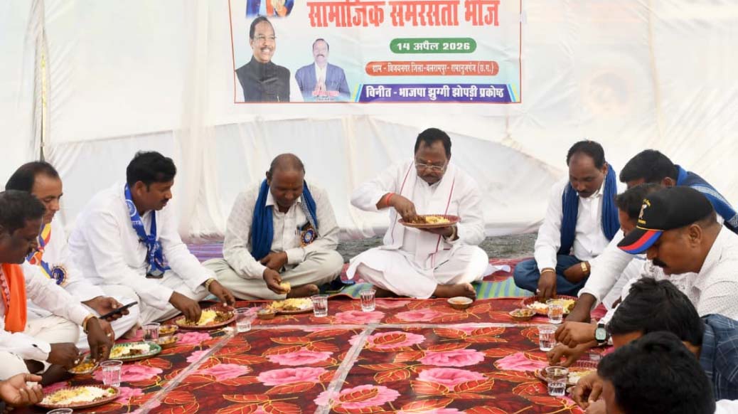 मंत्री श्री रामविचार नेताम ने अपनी सादगी का परिचय देते हुए उपस्थित जनसमुदाय और विभिन्न वर्गों के लोगों के साथ जमीन पर बैठकर सामाजिक समरसता भोज ग्रहण किया। मंत्री श्री नेताम की इस आत्मीय पहल ने समाज में ऊंच-नीच और भेदभाव की दूरियों को मिटाते हुए समानता, आपसी भाईचारे और राष्ट्रीय एकता का संदेश दिया। इस अवसर पर जिला पंचायत सदस्य श्री बद्री नाथ, अनुविभागीय अधिकारी श्री आनंद राम नेताम, जनपद सीईओ श्री रणवीर साय, कार्यपालन अभियंता ग्रामीण यांत्रिक सेवा श्री सच्चिदानंद कांत,स्थानीय जनप्रतिनिधिगण, वरिष्ठ नागरिक, समाज प्रमुख और बड़ी संख्या में ग्रामीणजन उपस्थित थे।