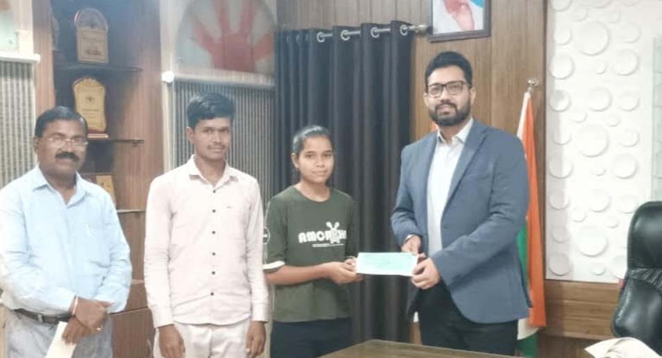 --कलेक्टर श्री लंगेह ने विद्यार्थियों को चेक प्रदान कर उज्ज्वल भविष्य की कामना की