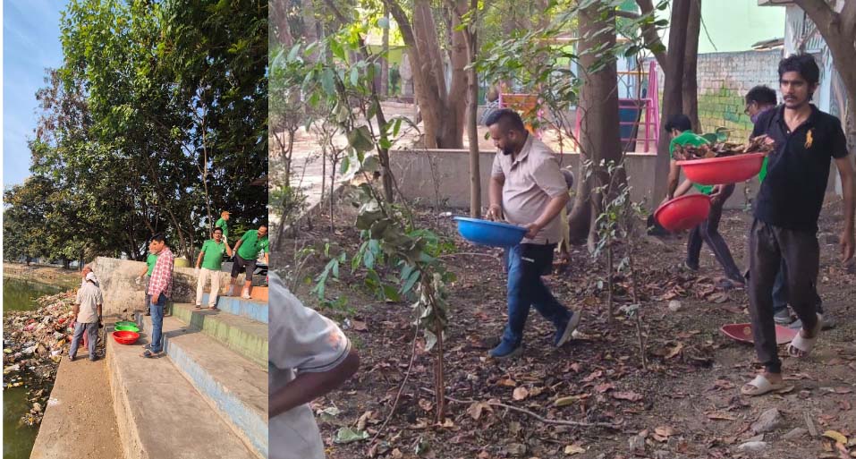 निगम के सफाई मित्रों ने ग्रीन आर्मी के स्वयंसेवकों के साथ रोहिणीपुरम तालाब की सफाई की
