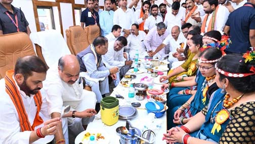 मुख्यमंत्री विष्णुदेव साय ने भाजपा कार्यकर्ताओं को खिलाई भजिया और पताल की चटनी