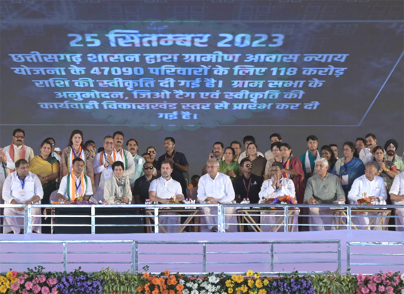 सांसद राहुल गांधी और मुख्यमंत्री भूपेश बघेल आवास न्याय सम्मेलन में हुए शामिल