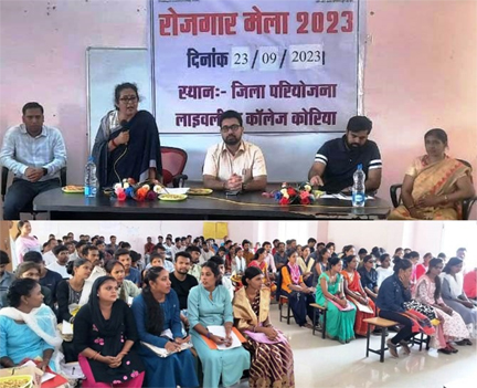 शासकीय लाइवलीहुङ कॉलेज, बैकुण्ठपुर में रोजगार मेले का आयोजन किया गया। कार्यक्रम में शासन के विभिन्न योजनाओं के तहत स्वरोजगार हेतु लाभान्वित हितग्राहियों को हितलाभ स्वीकृति पत्र वितरित किये गए। जिला प्रशासन के मार्गदर्शन में कौशल विकास प्राधिकरण एवं जिला रोजगार एवं स्वरोजगार मार्गदर्शन केंद्र बैकुंठपुर, जिला कोरिया द्वारा लाइवलीहुड कॉलेज परिसर में रोजगार मेले औऱ लोन मेले आयोजन किया गया था जिसके तहत आठ नियोजक उपस्थित हुए, 509 रिक्तियां प्राप्त हुई जिनके द्वारा प्रारंभिक रूप से 189 बेरोजगारी भत्ता प्राप्त सहित अन्य आवेदकों का चयन किया गया। जानकारी के मुताबिक एक सप्ताह पश्चात नियोजको द्वारा अंतिम चयन सूची जारी की जाएगी।