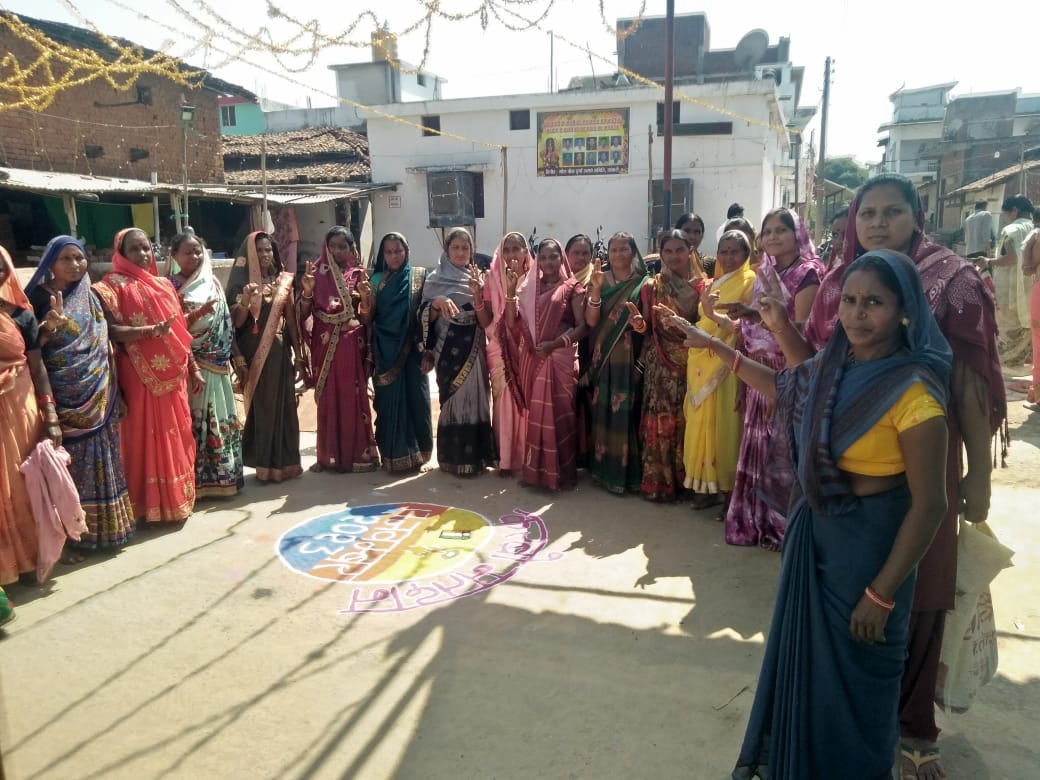 रंग-बिरंगे रंगोली बनाकर एवं नारे लिखकर दिया मतदाता जागरूकता का संदेश