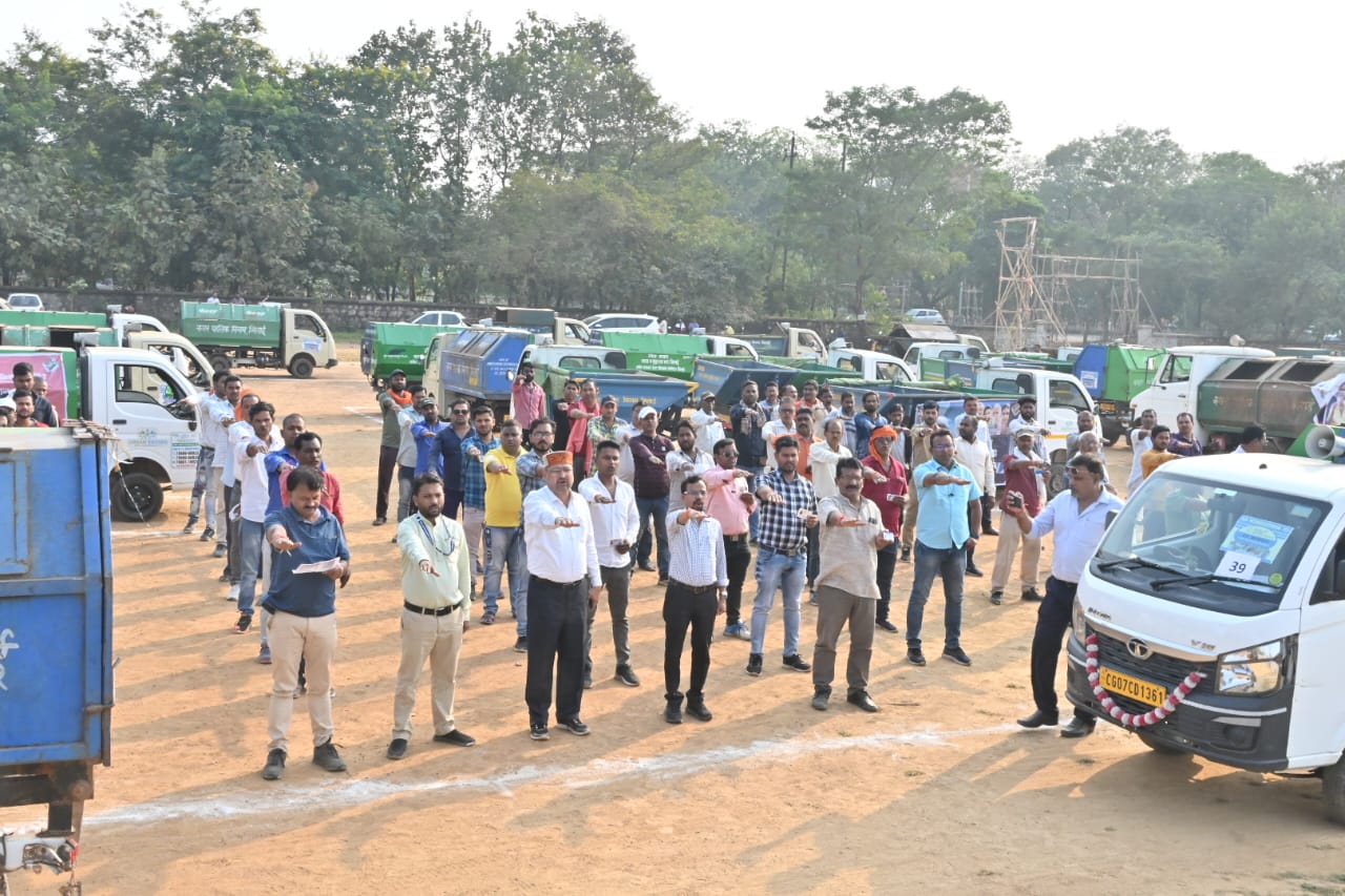 बैकुंठधाम वार्ड 32 के मैदान में सौ वाहनो को क्रमबद्ध खडे कर 17 नवम्बर का लिखित श्रंखला बनाया गया बाद इसके उपस्थित सभी अधिकारी कर्मचारियो को आयुक्त श्री व्यास ने बिना भय जाति पंथ से उपर उठ कर बिना भेद भाव के शत प्रतिशत मतदान करने का शपथ दिलाया । वाहन रैली