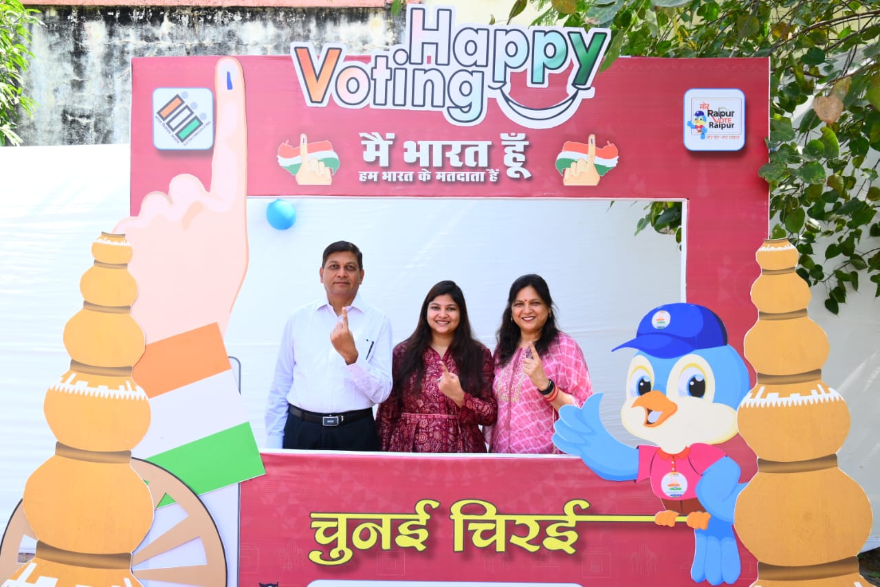 रायपुर/ मुख्य सचिव श्री अमिताभ जैन ने आज देवेंद्रनगर के मतदान केंद्र पहुँच कर सपरिवार अपने मताधिकार का प्रयोग किया। श्री जैन के साथ उनकी धर्मपत्नी ऋतु जैन एवं सुपुत्री अदिति जैन ने भी वोट डाला। मुख्य सचिव श्री जैन ने सभी मतदाताओं से अपने मताधिकार का प्रयोग करने का अनुरोध किया।