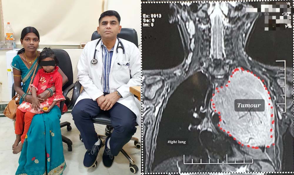 -तीन साल के बच्चे में पोस्टीरियर मेडिस्टाइनल ट्यूमर के ऑपरेशन का प्रदेश में पहला केस एवं देश में गिने चुने ही केस हुए हैं
