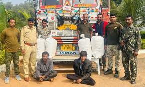 धमतरी. जिले में मादक पदार्थ गांजा की तस्करी करने के आरोप में पुलिस ने दो लोगों को गिरफ्तार किया है तथा उनसे 16 लाख रुपए कीमत का 80 किलोग्राम गांजा बरामद किया है। पुलिस ने शनिवार को यह जानकारी दी। पुलिस ने बताया कि जिले के बोराई थाना क्षेत्र में पुलिस ने दो लोगों-- मध्यप्रदेश को गांजा तस्करी करने के आरोप में गिरफ्तार किया है। उन्होंने बताया कि बोराई थाना क्षेत्र में गांजा तस्करी की सूचना मिलने के बाद पुलिस दल ने वाहनों की तलाशी शुरू की थी । उनके अनुसार शुक्रवार को तलाशी अभियान के दौरान उसने उड़ीसा की तरफ से आ रहे एक ट्रक को रोककर तलाशी ली तो ट्रक में 80 किलोग्राम गांजा मिला। पुलिस अधिकारियों ने बताया कि पुलिस ने ट्रक में सवार दो आरोपियों को गिरफ्तार कर लिया है तथा ट्रक से बरामद 16 लाख रुपए कीमत के 80 किलोग्राम गांजा, ट्रक और अन्य सामान को जब्त कर लिया गया है। उन्होंने बताया कि पूछताछ के दौरान आरोपियों ने बताया कि वे उड़ीसा से गांजा लेकर मध्यप्रदेश के लिए रवाना हुए थे। पुलिस अधिकारियों ने बताया कि आरोपियों से पूछताछ की जा रही है।
