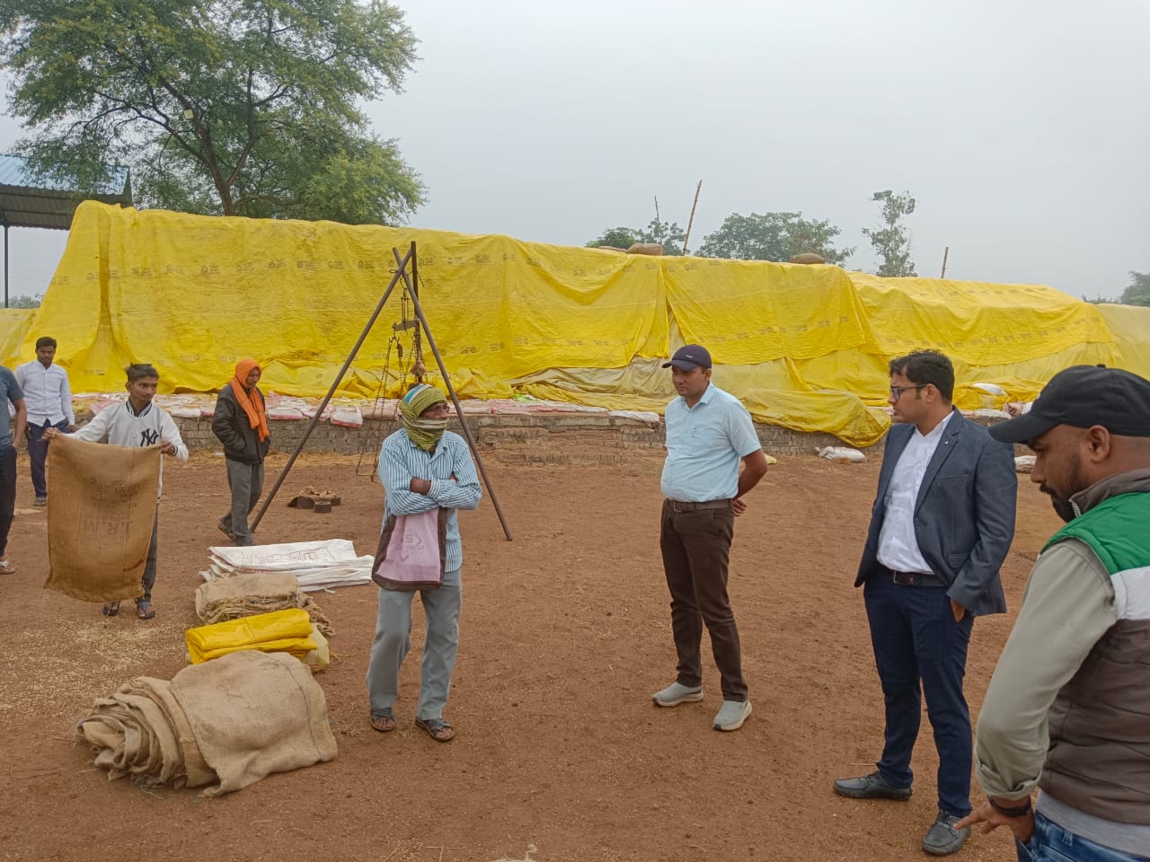 -अभियान चलाकर तारपोलीन से ढंके गये धान के बोरे