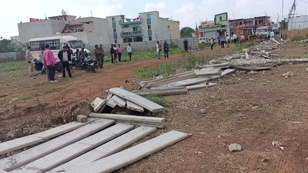 भिलाईनगर।कोहका के न्यू आर्य नगर,शुभम,शिव, छत्तीसगढ़ कालोनी क्षेत्र के 12 स्थानो पर किये गये अवैध प्लाटिंग के बाऊंड्रीवाल को ध्वस्त करते हुए भूमि को समतल कर पूर्व स्वरूप प्रदान किया गया।