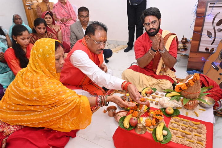 शपथग्रहण से पूर्व मुख्यमंत्री ने परिजनों के साथ की अपने घर में पूजा