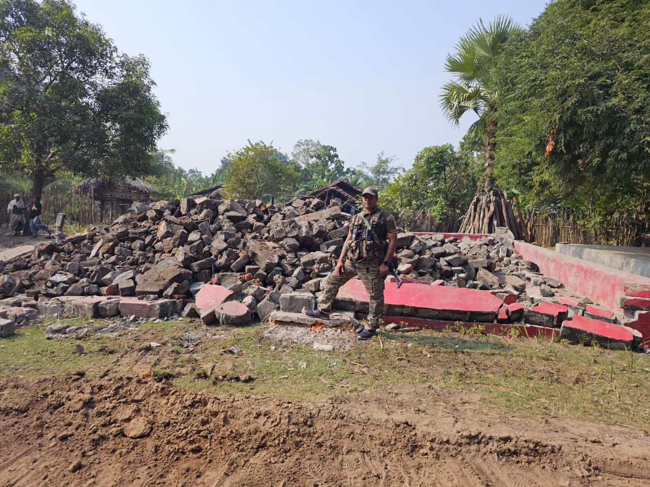 पुलिस ने सुकमा जिले के सलातोंग गांव में नक्सलियों द्वारा बनाये गए स्मारक को किया ध्वस्त