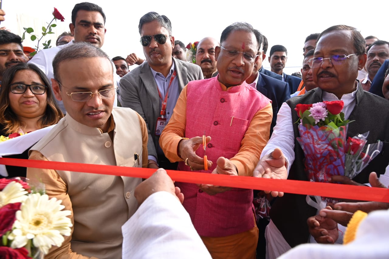 दुर्ग के खपरी में मुख्यमंत्री विष्णुदेव साय ने प्रदर्शनी का निरीक्षण किया