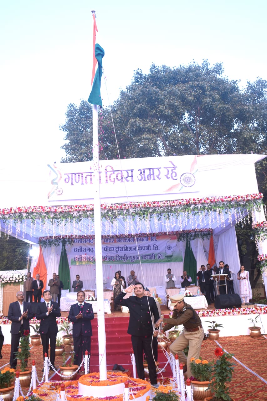 रायपुर/ छत्तीसगढ़ स्टेट पाॅवर कम्पनी मुख्यालय में आयोजित गणतंत्र दिवस समारोह में पावर कंपनी के चेयरमेन श्री पी.दयानंद (आई.ए.एस.) ने राष्ट्रीय ध्वज फहराकर उपस्थितजनों को बधाई एवं शुभकामनायें दी। इस अवसर पर उन्होंने कहा कि राज्य शासन ने नई ऊर्जा के साथ प्रदेश के सर्वांगीण विकास का संकल्प लिया है, उन्हें पूरा करने में छत्तीसगढ़ स्टेट पॉवर कंपनी की अहम् भूमिका है। सस्ती और सुलभ बिजली के जरिए हम आम आदमी के जीवन स्तर को बेहतर बनाने के लिये कार्य कर रहे हैं। चेयनमेन ने इस अवसर पर पाॅवर कंपनी के कर्मियों व पेंशनरों को महंगाई भत्तें की सौगात दी। सभी अधिकारी-कर्मचारियों का महंगाई भत्ता 1 जुलाई 2023 से 42 प्रतिशत से बढ़ाकर 46 प्रतिशत किया गया है। साथ ही उन्होंने एक्सग्रेसिया/बोनस 11 हजार रूपये तथा वाहन भत्तें में वृद्धि की भी घोषणा की।