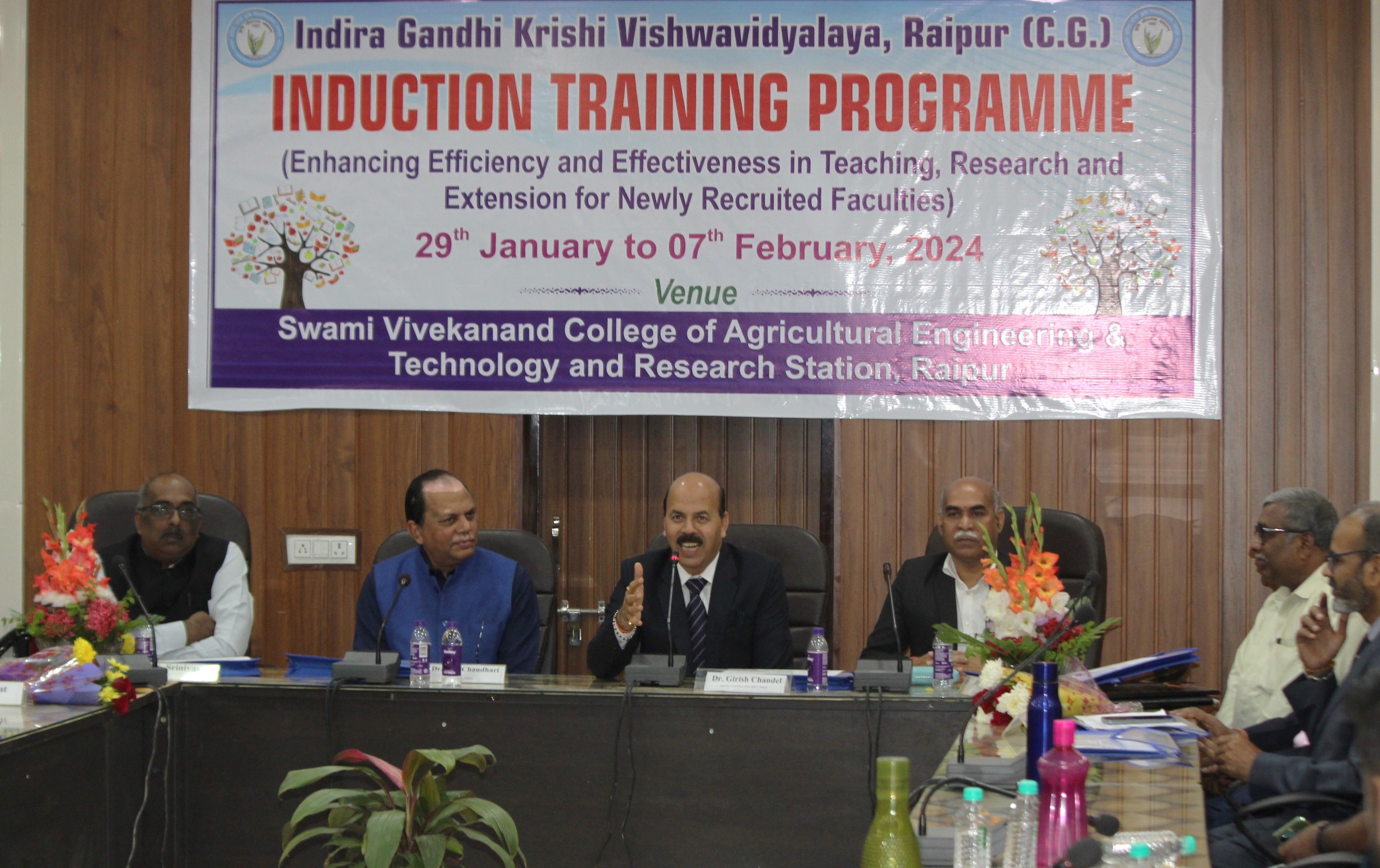 रायपुर । इंदिरा गांधी कृषि विश्वविद्यालय के अंतर्गत संचालित विभिन्न महाविद्यालयों एवं कृषि विज्ञान केन्द्रों हेतु नवचयनित 56 सहायक प्राध्यापकों एवं 18 विषय वस्तु विशेषज्ञों के लिए आज से 10 दिवसीय प्रेरण प्रशिक्षण कार्यक्रम प्रारंभ किया गया। प्रेरण प्रशिक्षण कार्यक्रम के शुभारंभ समारोह के मुख्य अतिथि भारतीय कृषि अनुसंधान परिषद के उप महानिदेशक (प्राकृतिक संसाधन प्रबंधन) डॉ. एस.के. चौधरी ने नवनियुक्त सहायक प्राध्यापकों एवं विषय वस्तु विशेषज्ञों को संबोधित करते हुए कहा कि वे पूरी निष्ठा, लगन एवं समर्पण के साथ अपनी कर्तव्यों का पालन करें। दूसरों के साथ प्रतिस्पर्धा करने के बजाय स्वयं के साथ प्रतिस्पर्धा करें तथा प्रतिदिन अपने आप को बेहतर बनायें। उन्होंने कहा कि हमारे पौराणिक आख्यानों में व्यक्त सूत्र वाक्य ‘‘अप्प दीपो भवः’’ को अपने जीवन में चरितार्थ करते हुए स्वयं दीप की भांति प्रकाशित हों तथा अपने विद्यार्थियों के जीवन को भी आलोकित करें। कार्यक्रम की अध्यक्षता करते हुए इंदिरा गांधी कृषि विश्वविद्यालय के कुलपति डॉ. गिरीश चंदेल ने नवनियुक्त सहायक प्राध्यापकों एवं विषय वस्तु विशेषज्ञों से आव्हान किया कि वे प्रधानमंत्री श्री नरेन्द्र मोदी के विकसित भारत की परिकल्पना को साकार करने हेतु अपना श्रेष्ठतम योगदान दें।