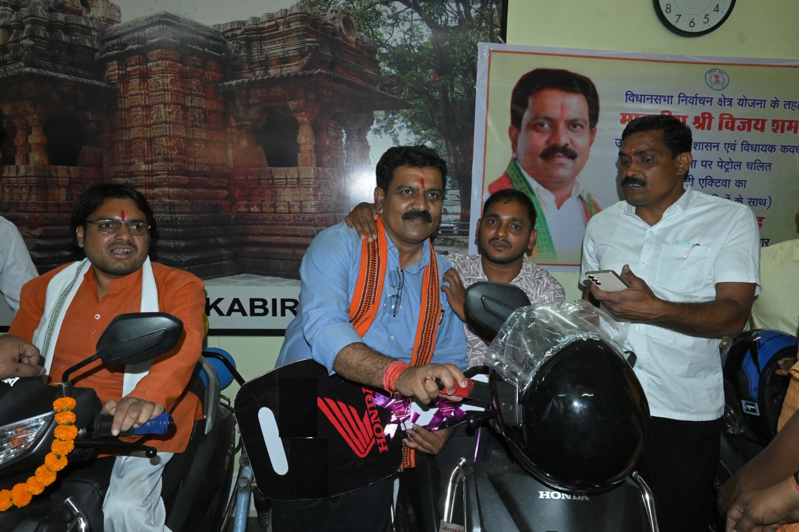 उपमुख्यमंत्री विजय शर्मा के प्रयासों से मोटर चलित स्कूटी पाकर दिव्यांगजन हुए खुश