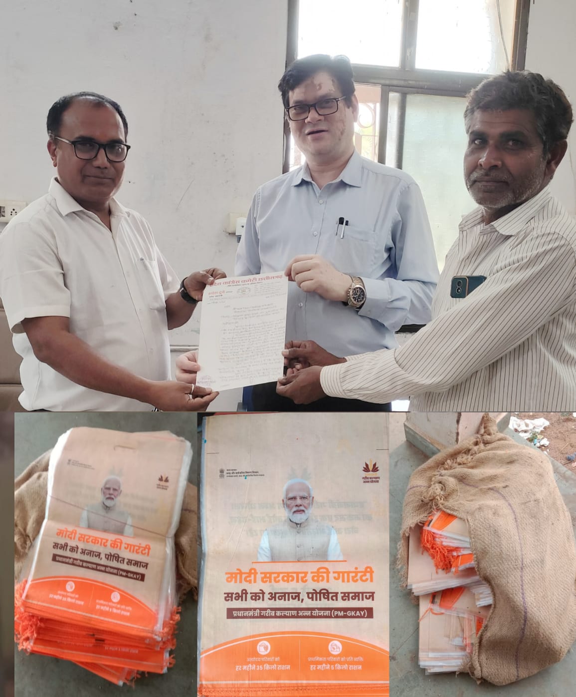 प्रधानमंत्री के फोटो वाले बैग में पीडीएस का चावल ! कांग्रेस ने निर्वाचन अधिकारी से की शिकायत