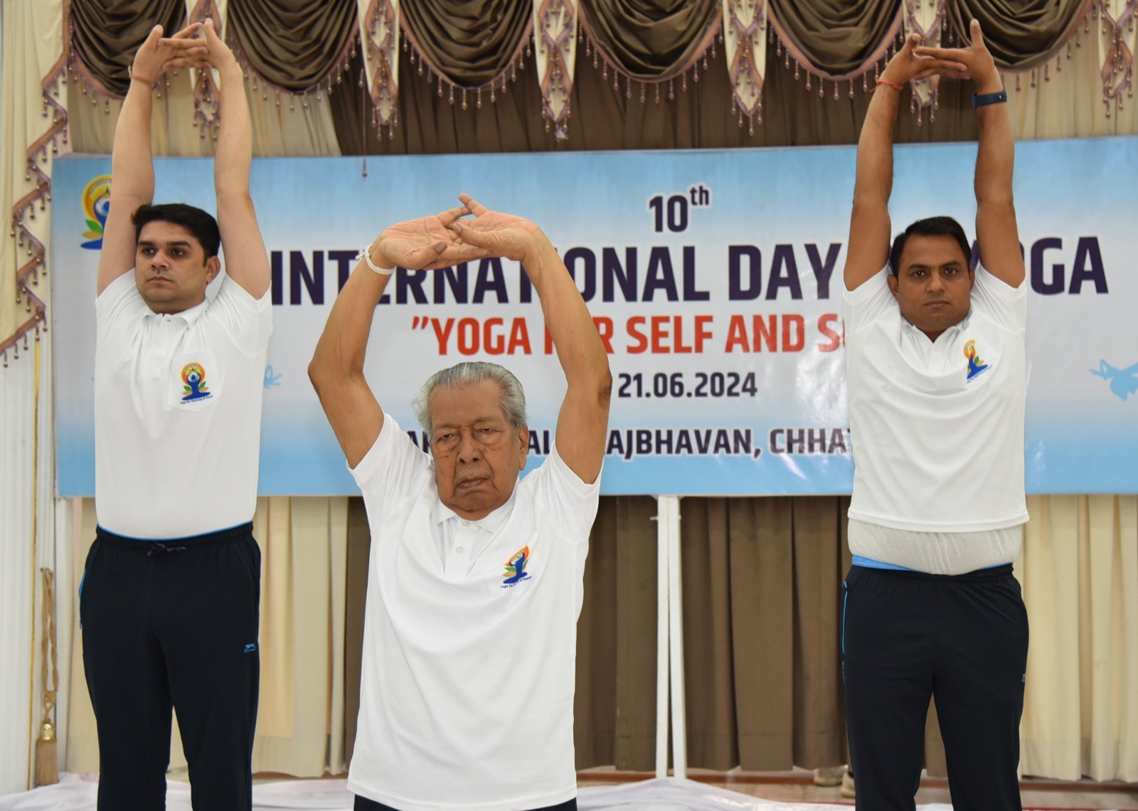 कार्यक्रम में योग आयोग से आए हुए प्रशिक्षकों के मार्गदर्शन में राजभवन के सभी अधिकारियों एवं कर्मचारियांे ने उत्साह पूर्वक योगाभ्यास किया। राज्यपाल ने योग आयोग के प्रशिक्षको को राजकीय गमछा, श्रीफल एवं स्मृति चिन्ह भेंट कर सम्मानित किया।
