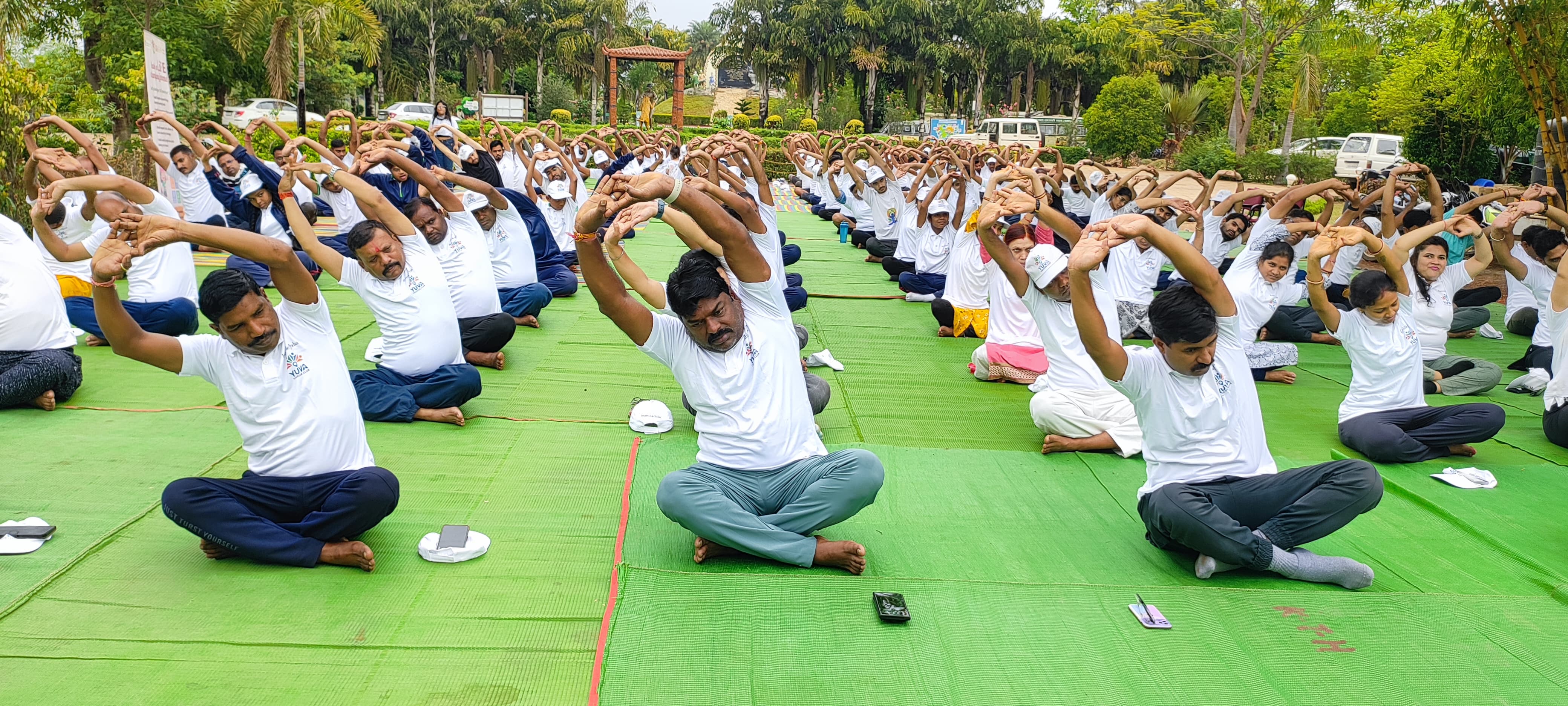 10 वें अंतर्राष्ट्रीय योग दिवस पर नया रायपुर के जंगल सफारी करीब 200 लोगों ने किया योग
