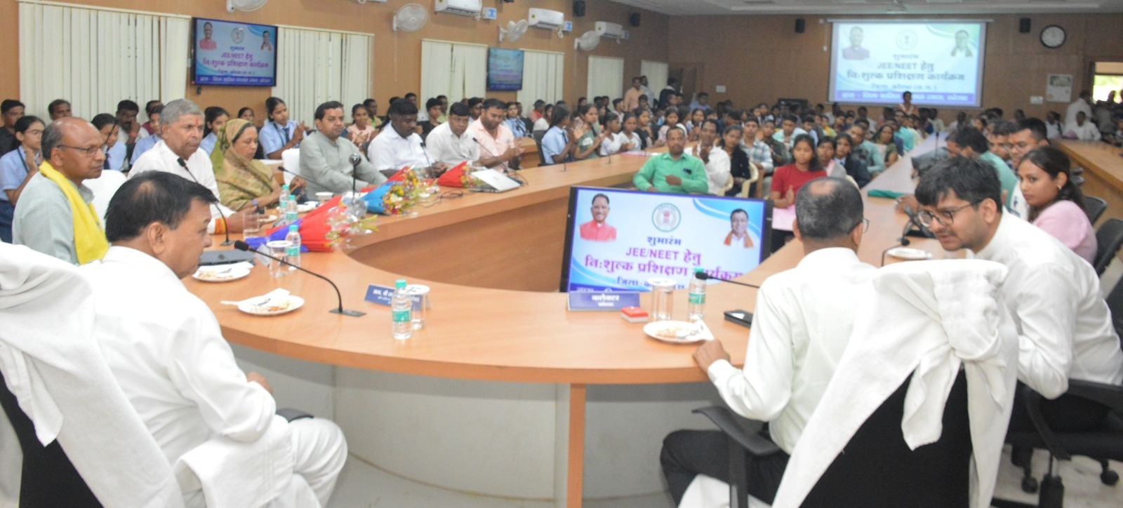 रायपुर / छत्तीसगढ़ शासन के वाणिज्य, उद्योग एवं श्रम मंत्री श्री लखनलाल देवांगन की उपस्थिति में आज कोरबा कलेक्ट्रेट के सभाकक्ष में जिले के मेधावी विद्यार्थियों हेतु जेईई, नीट के निःशुल्क प्रशिक्षण कार्यक्रम का शुभारंभ किया गया। उन्होंने सभी विद्यार्थियों के उज्ज्वल भविष्य की कामना करते हुए निरंतर कड़ी मेहनत कर लक्ष्य प्राप्त करने की शुभकामनाएं दी।