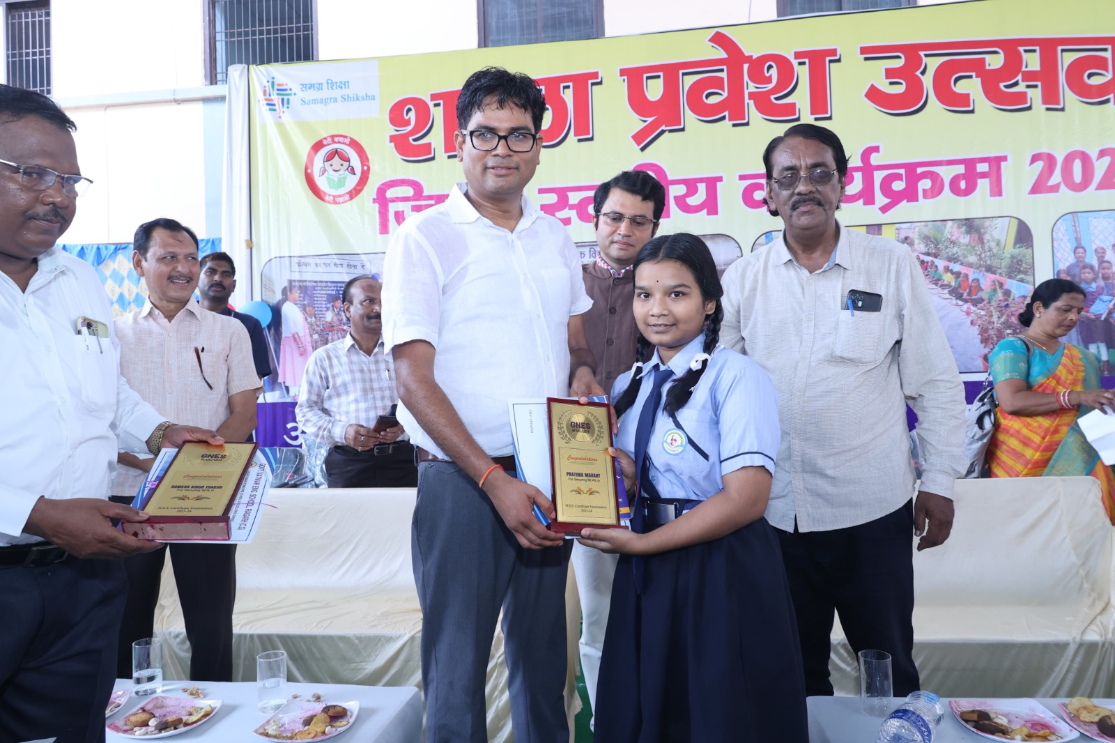 जिला स्तरीय शाला प्रवेशोत्सव के अवसर पर प्रतिभाशाली बच्चों को सर्टिफिकेट, मोमेन्टो एवं बुक प्रदान कर सम्मानित किया गया। जिसमें प्रतिमा महंत, रमेश सिंग, खुशवेन्द्र टंडन, तेजस्वनी निषाद, रौनक चौधरी, निशि मिश्रा, गरिमा पटेल, तौफेल अंसारी, राखी पटेल एवं रितिका महंत शामिल थे।