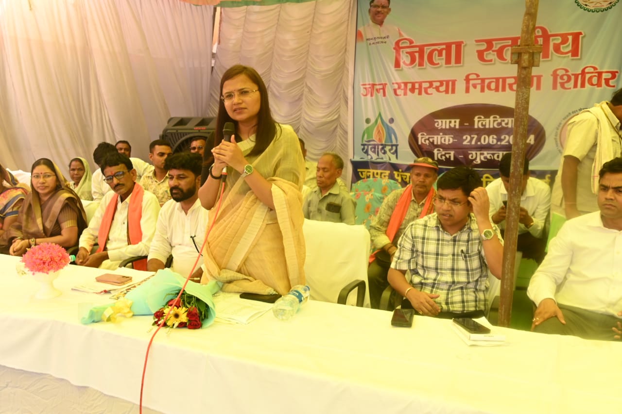 शिविर के उद्देश्यों पर प्रकाश डालते हुए कलेक्टर सुश्री ऋचा प्रकाश चौधरी ने अपने सम्बोधन में कहा कि शिविर के माध्यम से शासन-प्रशासन को जनता के करीब लाना है। उन्होंने कहा कि शिविर में अधिकारियों ने विभाग द्वारा संचालित योजनाओं की विस्तारपूर्वक जानकारी दी है। साथ ही समाधान योग्य आवेदनों का मौके पर ही निराकरण किया गया। कलेक्टर ने लंबित आवेदनों के संबंध में एसडीएम और जनपद सीईओ को संबंधित विभागों से त्वरित निराकरण कराने के निर्देश दिए हैं। उन्होंने क्षेत्रीय जनप्रतिनिधियों को लिटिया में आईटीआई के लिए जमीन उपलब्ध कराने का भरोसा दिलाया है। साथ ही यहां पर बैंक खोलने के लिए भी प्रयास किया जाएगा। कलेक्टर ने कहा कि जिले के किसानों की समस्याओं पर भी प्रशासन विशेष ध्यान दे रही है। कृषि विभाग के अधिकारी जिले में डीएपी खाद के विकल्प खाद का उठाव हेतु किसानों को प्रोत्साहित करें। इससे पूर्व कलेक्टर सुश्री चौधरी ने विभिन्न विभागीय स्टालों का निरीक्षण कर अधिकारियों को प्राप्त आवेदनों का उचित ढंग से निराकरण करने के निर्देश दिये। कलेक्टर सुश्री चौधरी स्थानीय जनप्रतिनिधियों के साथ महिला एवं बाल विकास विभाग के गोद भराई एवं अन्नप्रासन्न रस्म अदायगीय में भी सम्मिलित हुई।
