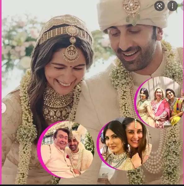 रणबीर कपूर अपनी एक फोटो में बड़े पापा रणधीर कपूर के साथ पोज देते नजर आए। उनकी यह तस्वीर करीना कपूर ने अपने इंस्टाग्राम एकाउंट से शेयर की। रणबीर कपूर और आलिया भट्ट की शादी में बारातियों ने भी खूब धूम मचाया। एक फोटो में नीतू कपूर, रिद्धिमा और रीमा जैन के साथ पोज देती दिखाई दीं, जिसमें उनका अंदाज वाकई में देखने लायक रहा। रणबीर कपूर की शादी की तस्वीरें देखकर कहा जा सकता है कि रिद्धिमा कपूर और करीना कपूर ने खूब एंजॉय किया। दोनों एक साथ सेल्फी भी लेते नजर आए। भाई रणबीर कपूर की शादी में रिद्धिमा कपूर और करीना कपूर ने अपने लुक्स से तो धमाल मचाया ही, साथ ही कैमरे के सामने एक से एक पोज भी दिए। रिद्धिमा कपूर ने आलिया भट्ट की मम्मी सोनी राजदान के साथ रंग जमाने में भी कोई कसर नहीं छोड़ी। इस फोटो को रिद्धिमा ने अपने इंस्टाग्राम स्टोरी पर शेयर की। करिश्मा कपूर ने भी अपने भाई और भाभी को फोटो शेयर कर बधाईया दीं, साथ ही उन्हें गॉर्जियस कपल भी बताया।
