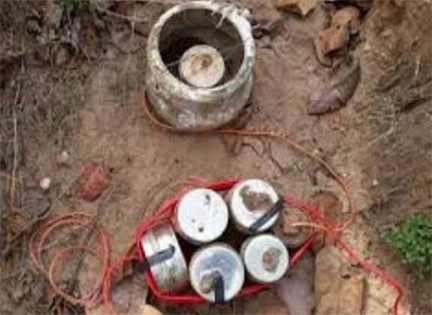 चाईबासा (झारखंड). झारखंड के चाईबासा जिले में टेबो के हलमद जंगल में नक्सलियों द्वारा छिपाकर रखी गयी कुल चौदह किलोग्राम वजन की आधा दर्जन आइईडी सुरक्षा बलों ने बुधवार को बरामद कर नष्ट कर दी। पुलिस सूत्रों ने आज यहां बताया कि बुधवार को चाईबासा पुलिस को विशेष सूचना प्राप्त हुई कि टेबा थानान्तर्गत हलमद एवं रोग्तो के जंगलों में इम्प्रोवाइज्ड एक्सप्लोसिव डिवाइस (आईईडी) छिपाकर रखी गयी है। इस सूचना के आधार पर चाईबासा के पुलिस अधीक्षक के निर्देशन में जिला पुलिस, केंद्रीय रिजर्व पुलिस बल (सीआरपीएफ) की 60वीं वाहिनी एवं बम निरोधक दस्ते ने संयुक्त रूप से विशेष खोजी अभियान चलाया, जिसमें जंगल में छिपाकर रखी गयी कुल छह आईईडी, एक टिफिन बम एवं नौ बण्डल कोर्टेक्स केबल बरामद किये गये। उन्होंने बताया कि बरामद आईईडी को बम निरोधक दस्ते द्वारा मानक परिचालन प्रक्रिया (एसओपी) का पालन करते हुए घटनास्थल पर ही नष्ट कर दिया गया। पुलिस ने बताया कि इस संदर्भ में विस्फोटक अधिनियम की सुसंगत धाराओं के अन्तर्गत प्राथमिकी दर्ज कर आगे की कार्रवाई की जा रही है।